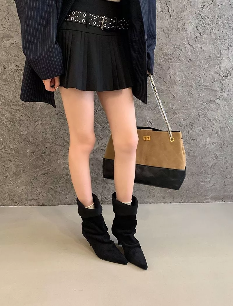 Stivali da donna a punta dal design raffinato, perfetti per la stagione autunnale. Realizzati in morbida pelle sintetica scamosciata, offrono una calzata comoda e uno stile sofisticato.