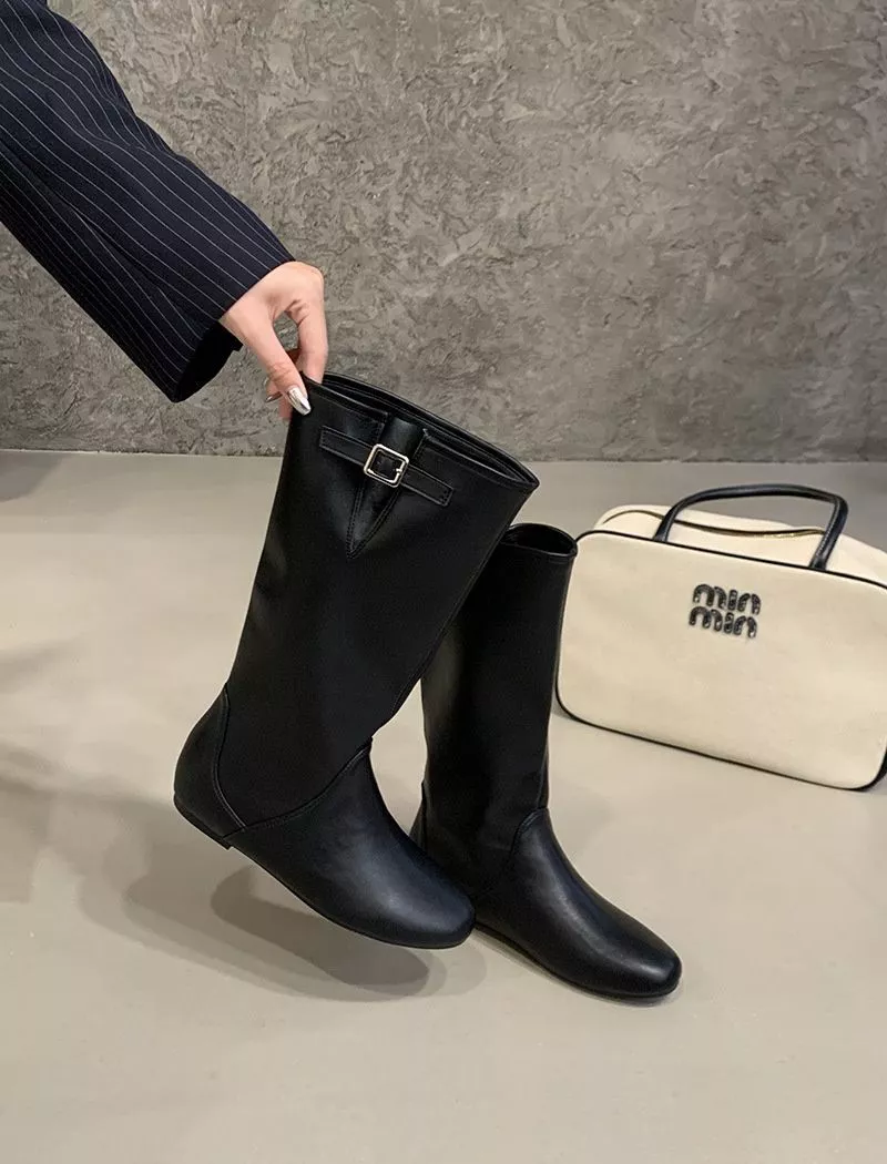 Stivali Neri Al Polpaccio In Pelle Sintetica Morbida Tacco Basso Casual CF56453