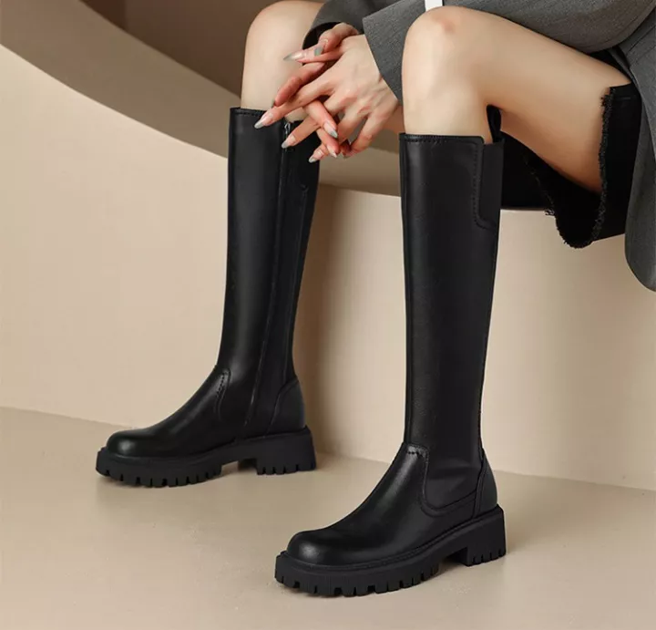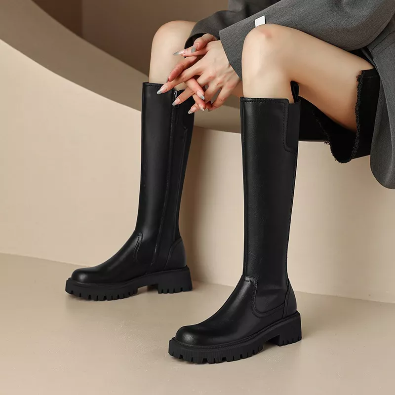 Stivali Scarpe Anfibi Alti 5 cm Nero Eleganti Platform Pelle Sintetica 39793