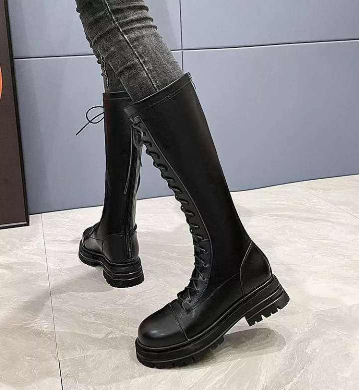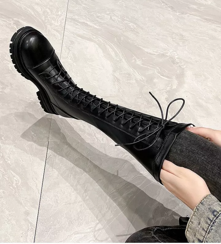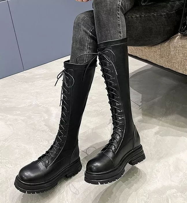 Stivali Scarpe Anfibi Alti 5 cm Nero Lacci Platform Pelle Sintetica 40705