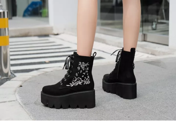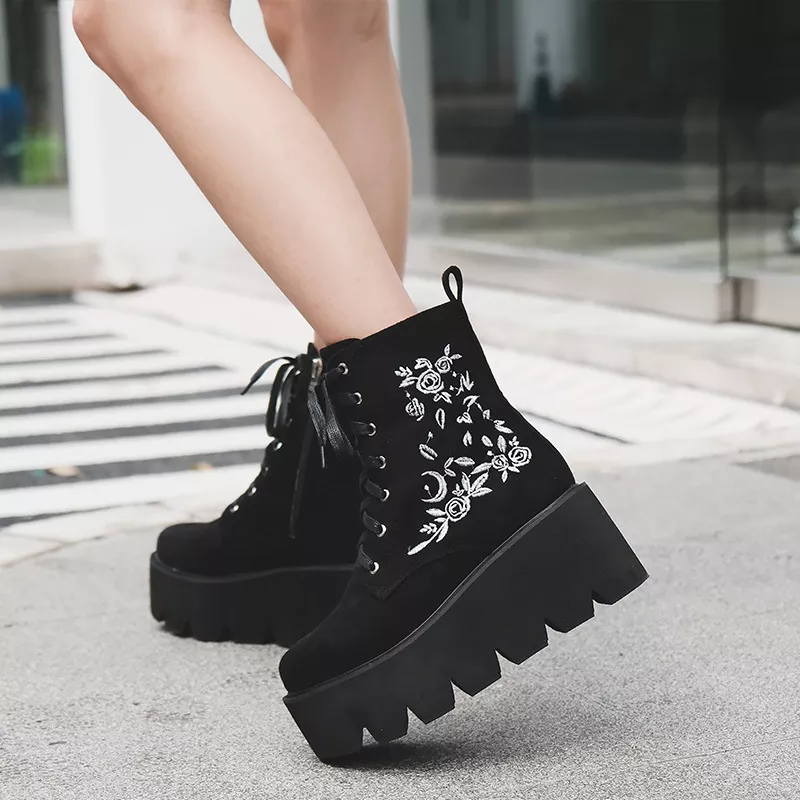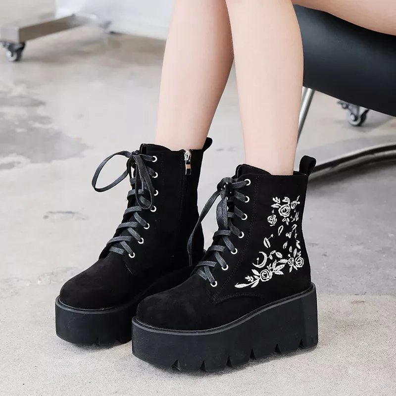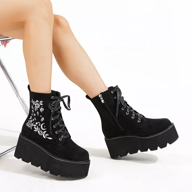 Stivali Scarpe Stivaletti Anfibi Zeppa Nero 8 cm Pelle Sintetica Platform 42358