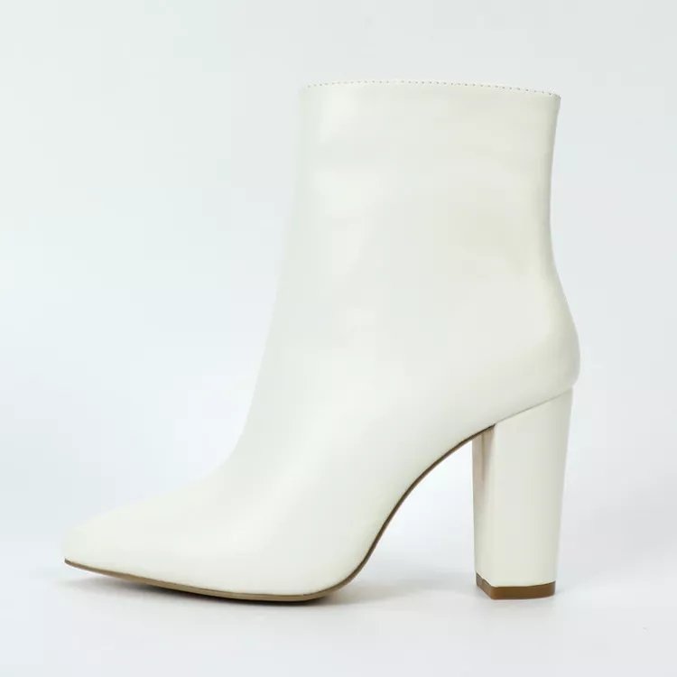 stivali scarpe stivaletti donna tronchetto bianco 8 cm pelle sintetica 35703