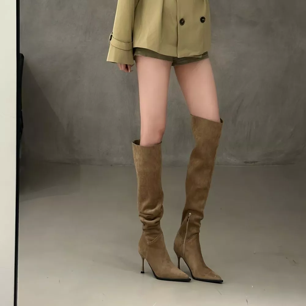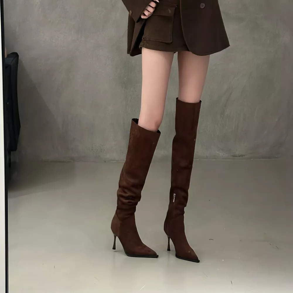Stivali Alti Cachi In Pelle Sintetica Con Tacco A Spillo 7 Cm CF56906