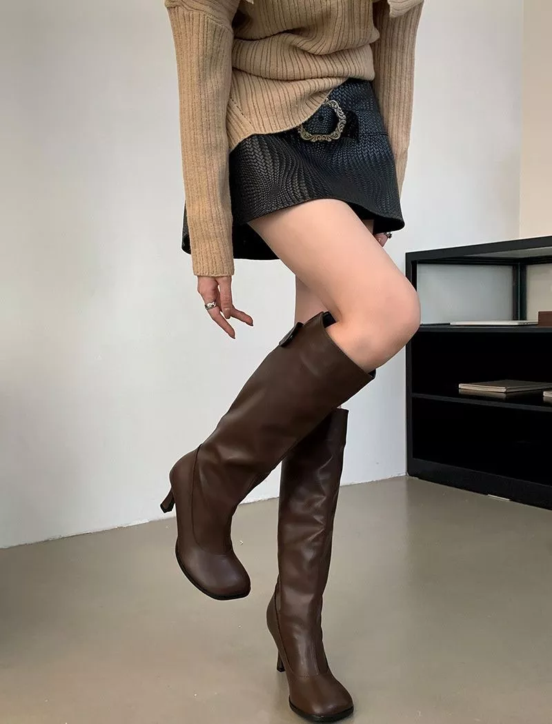 Stivali Marroni Donna Sotto Il Ginocchio In Pelle Sintetica Eleganti CF54984