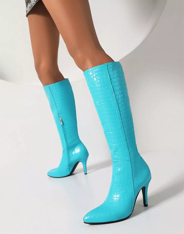 Stivali Turchesi Donna Tacco 8,5 cm Moda Punta Affusolata Texture Cocco CF59650