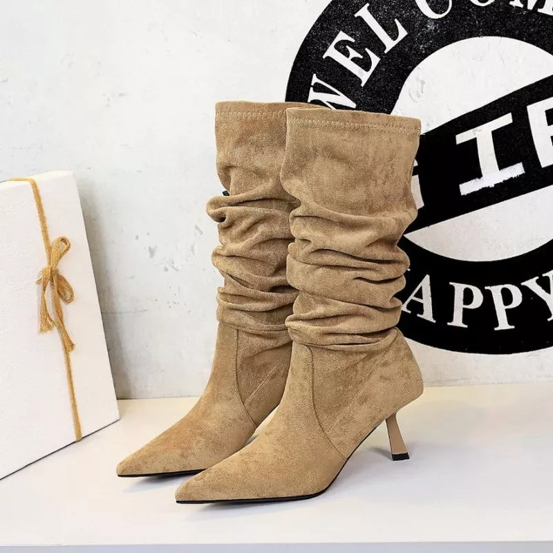 Stivali Donna Kaki A Punta Con Tubo Morbido E Tacco Medio 6,5 Cm CF62121