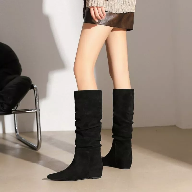 Stivali Donna Albicocca Al Ginocchio Effetto Camoscio Slim Zeppa Interna CF62124