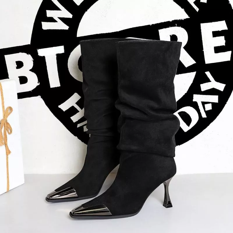 Stivaletti Donna Neri Al Ginocchio Con Tacco 6,5 Cm Punta Affusolata CF64016