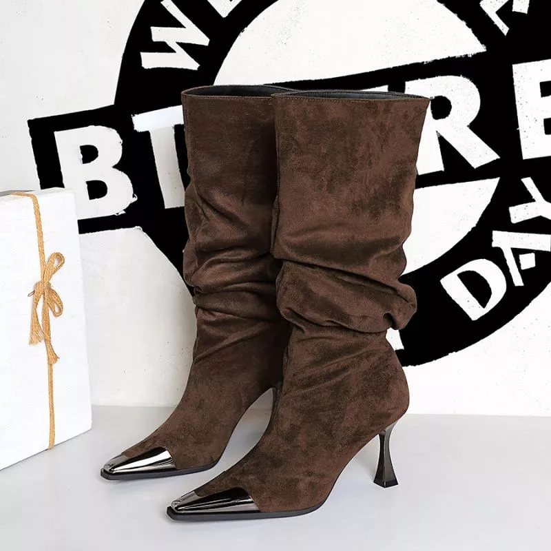 Stivaletti Donna Raffinati A Gamba Morbida Tacco 8,5 cm Marrone Scuro CF65317