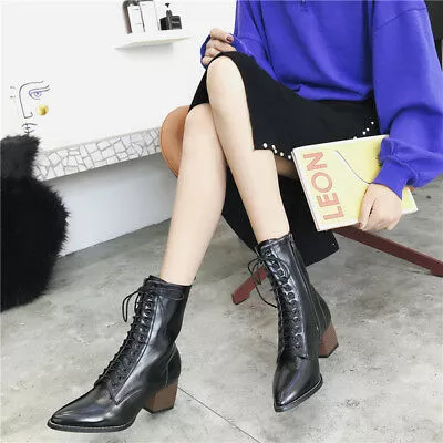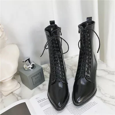 stivali stivaletti scarponcini bikers lacci anfibi donna tacco 6 cm nero 38
