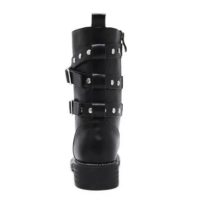 stivali stivaletti scarponcini bikers nero comodi anfibi donna tacco 5.5 cm 1651