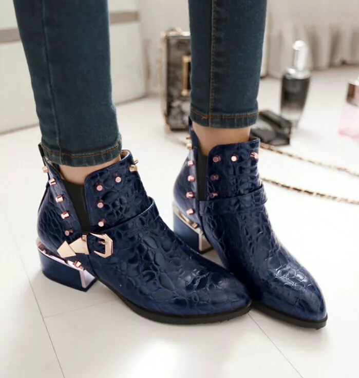 stivali stivaletti stiletto scarpe tacco 4 cm blu comode pelle sintetica 36.5 .