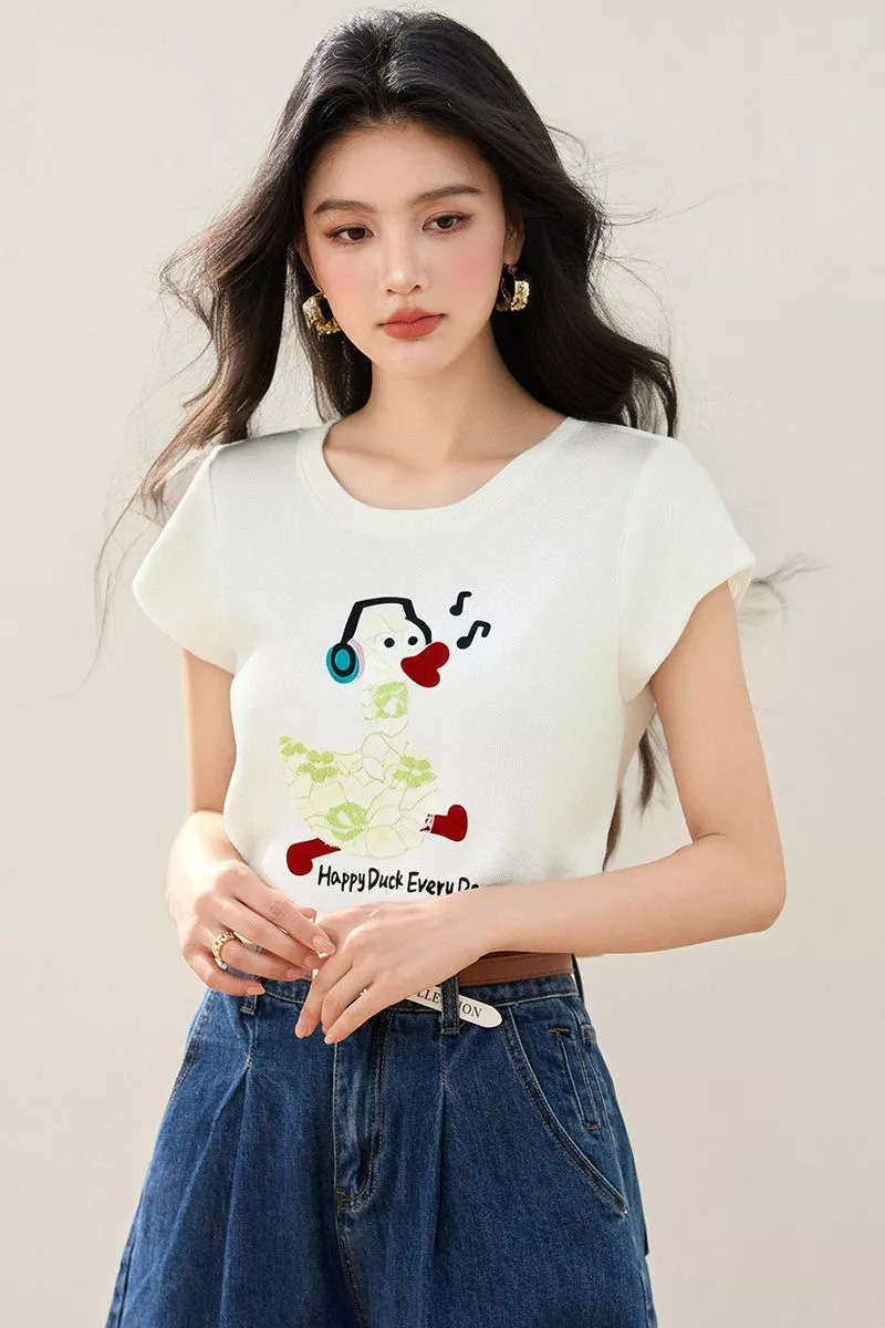 T-shirt leggera da donna in maglia sottile, perfetta per l’estate. Il taglio aderente e le maniche corte valorizzano la figura, mentre il tessuto elasticizzato garantisce comfort e freschezza per tutta la giornata.