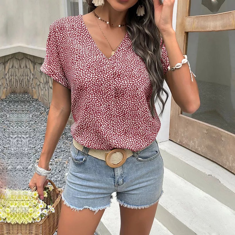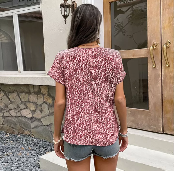 T-shirt maglia donna camicia camicetta corta top rosso pois morbida boho 14370