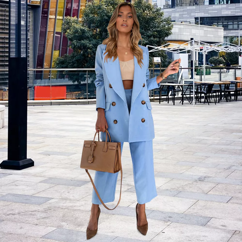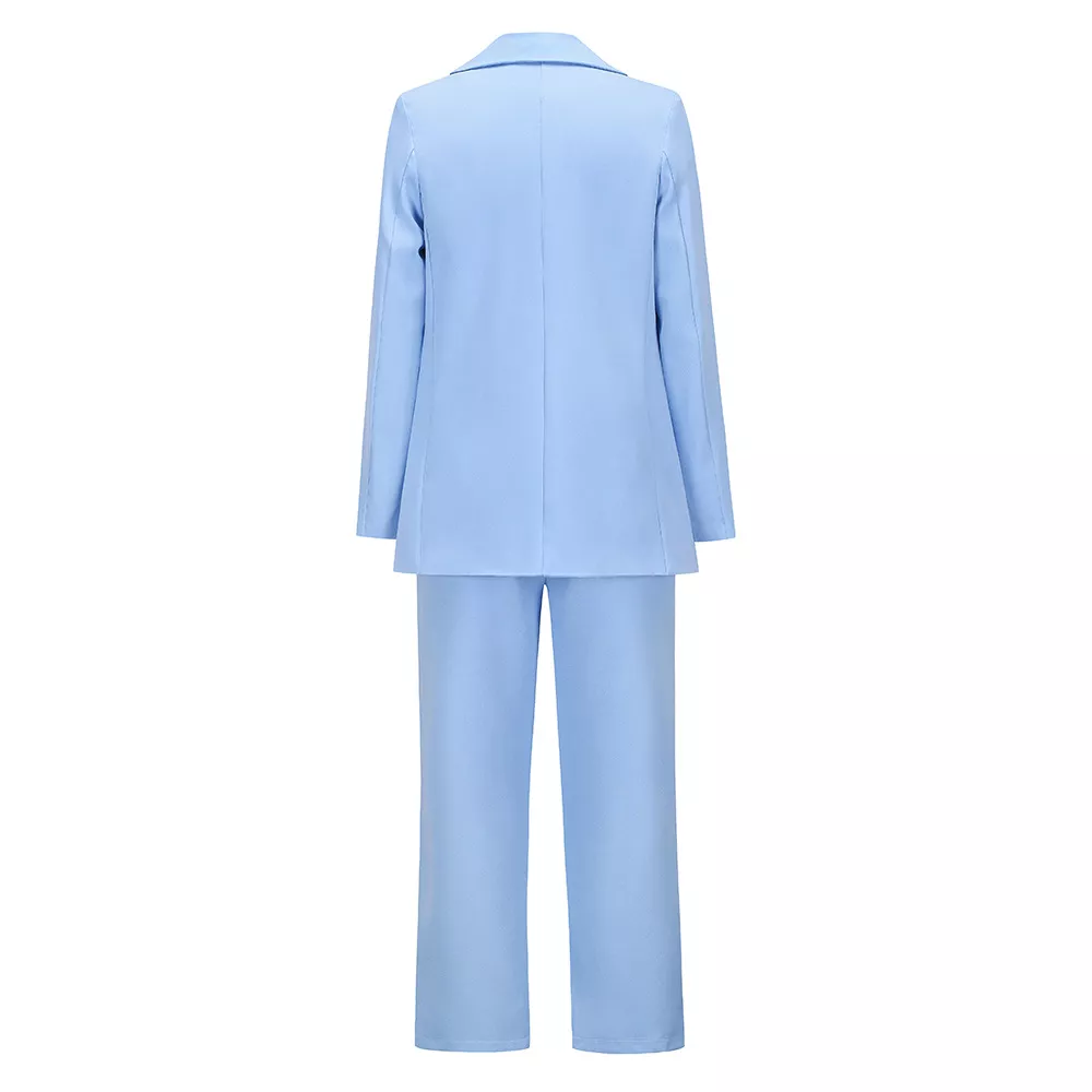 Tailleur completo donna outfit donna giacca over manica azzurro pantaloni T174