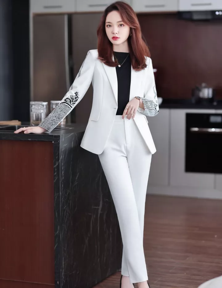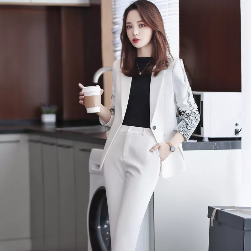Tailleur completo donna ufficio giacca blazer pantaloni bianco nero T191
