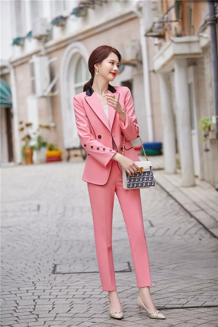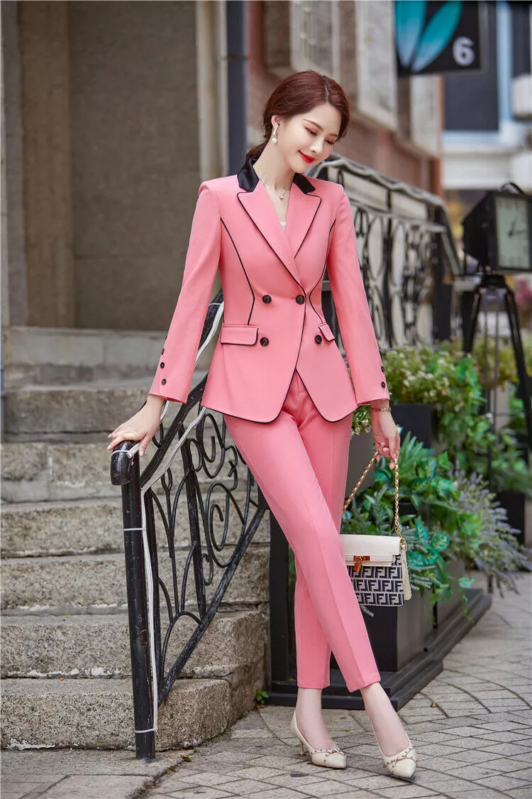 Tailleur completo donna ufficio giacca pantaloni maniche slim fit rosa T117
