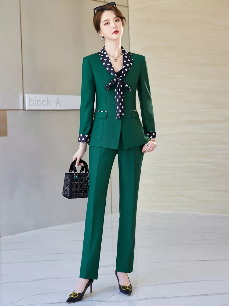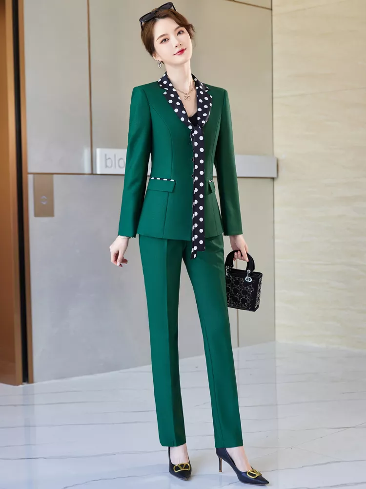 Tailleur Completo Outfit Set Donna Ufficio Giacca Blazer Verde Foulard 38809