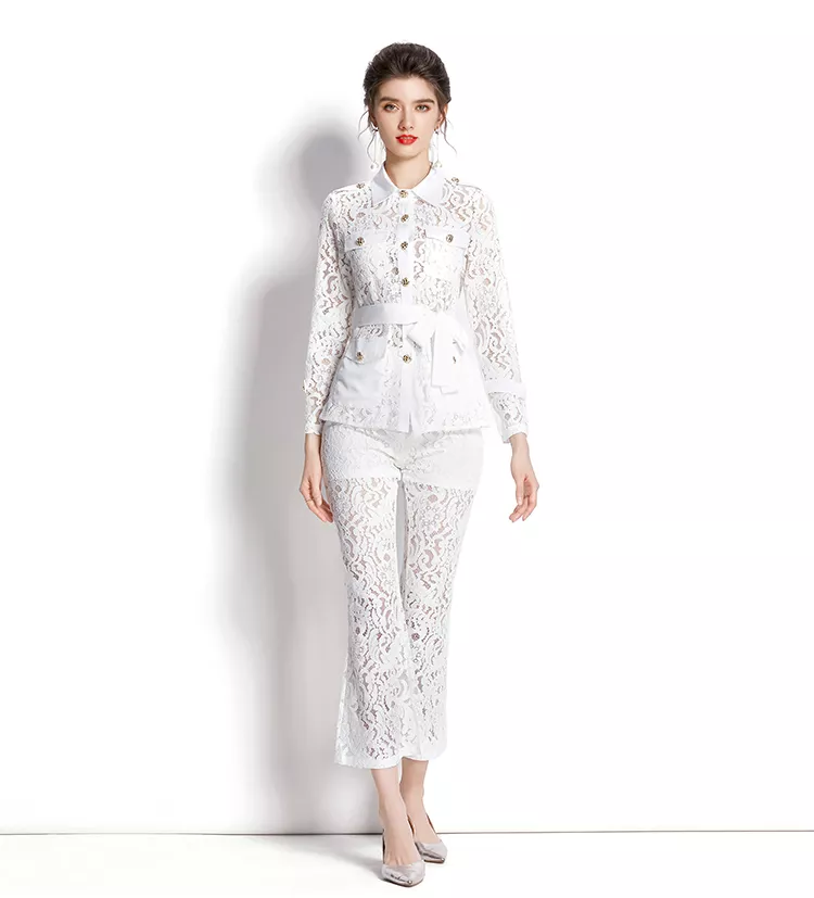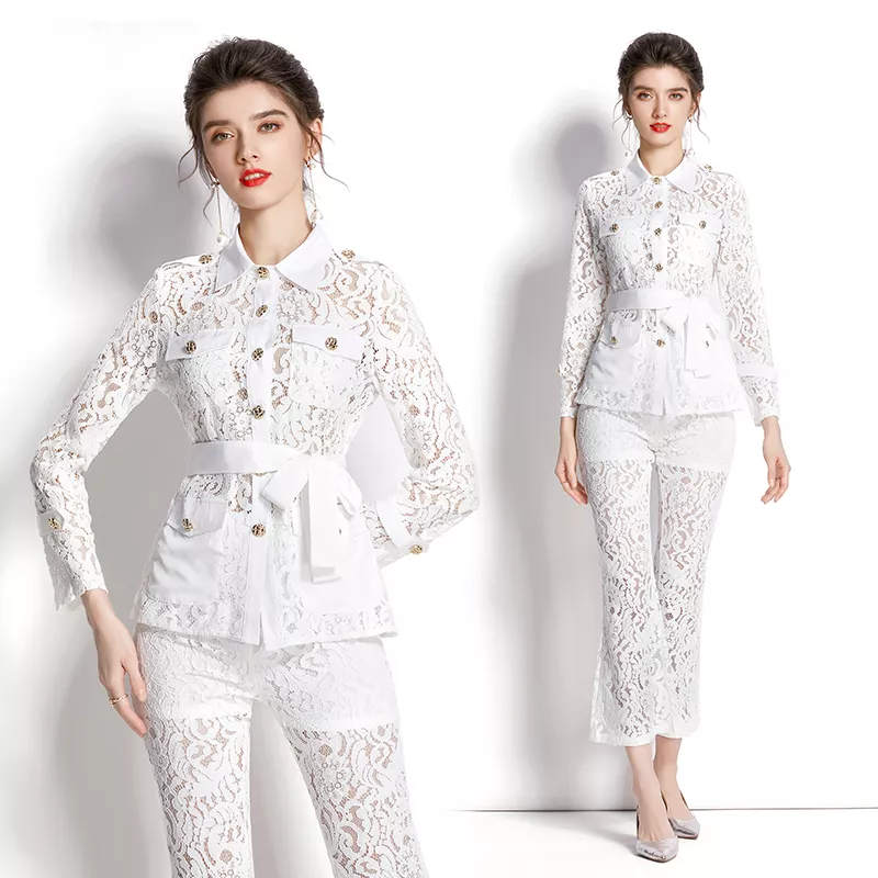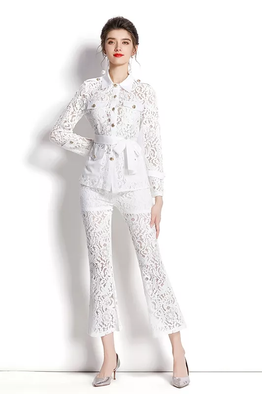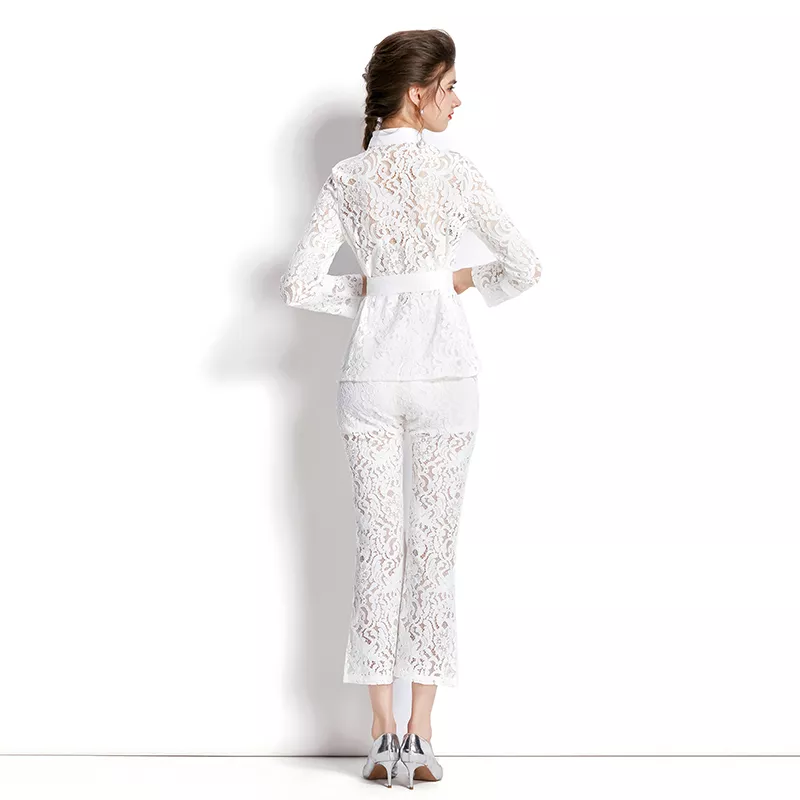 tailleur completo set giacca maglia pantaloni elegante outfit set bianco 27382