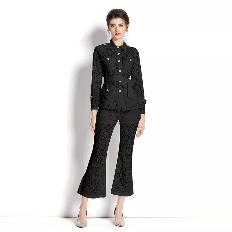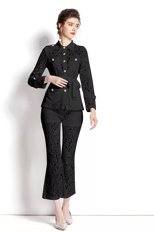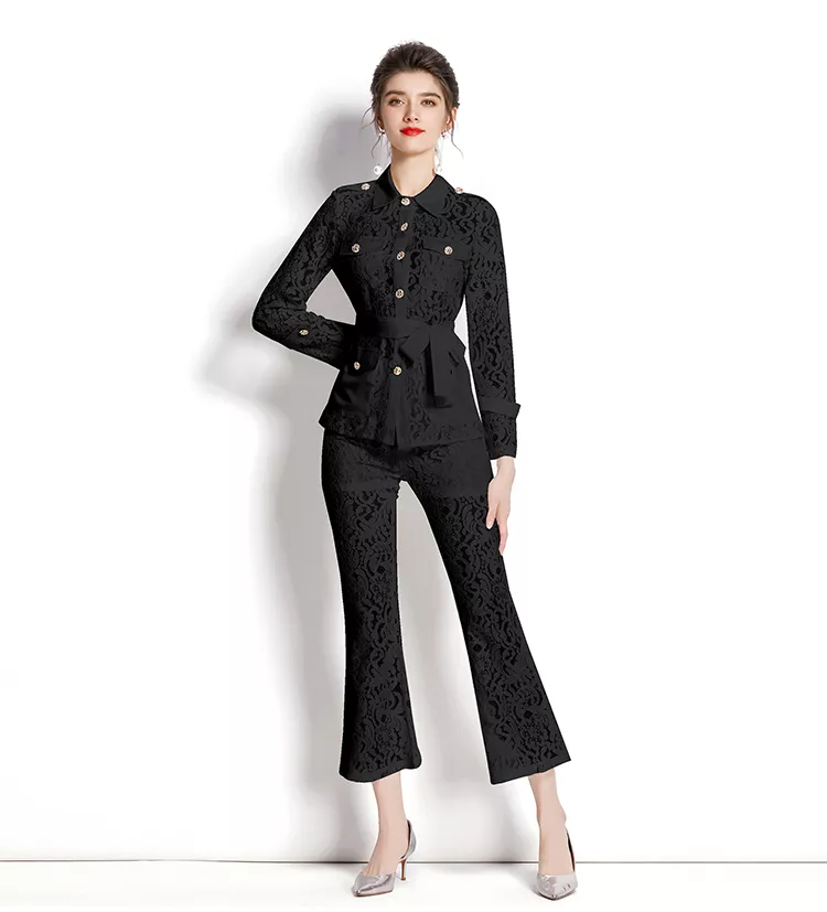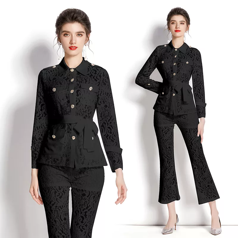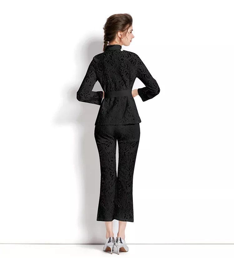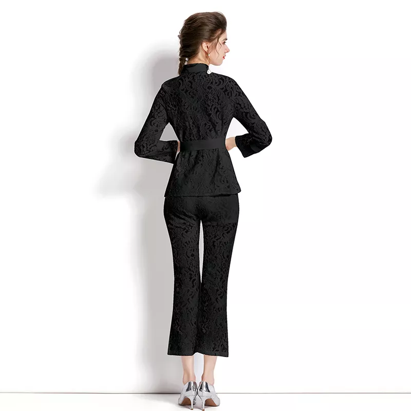 tailleur completo set giacca maglia pantaloni elegante outfit set nero 27382