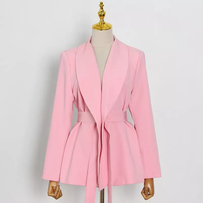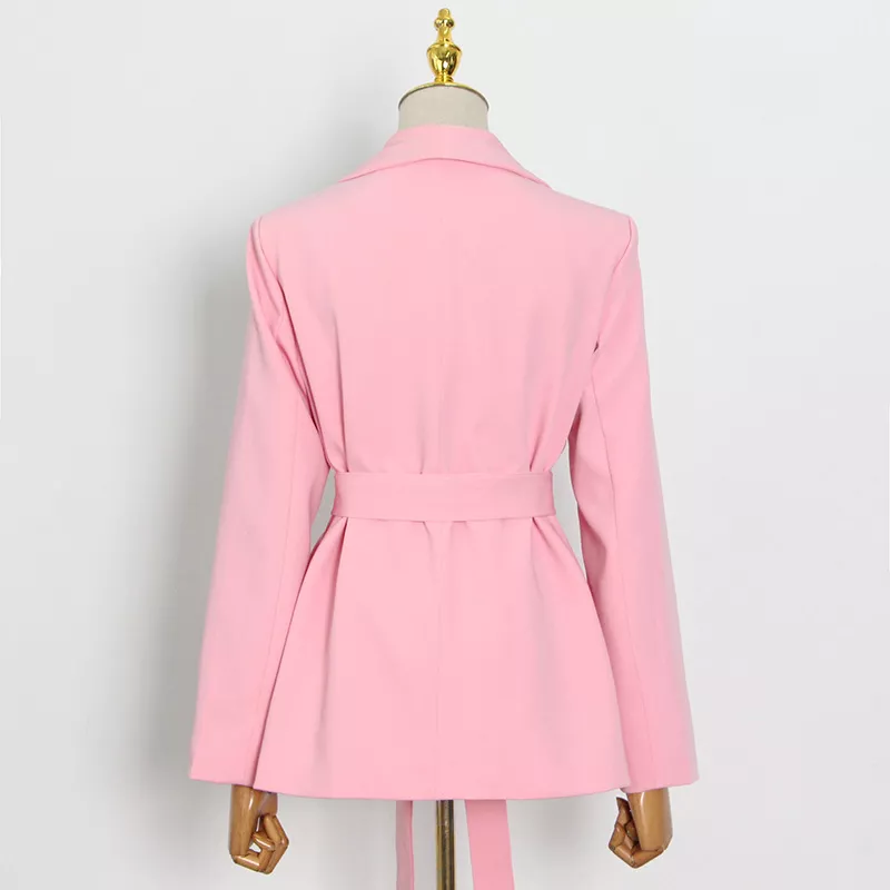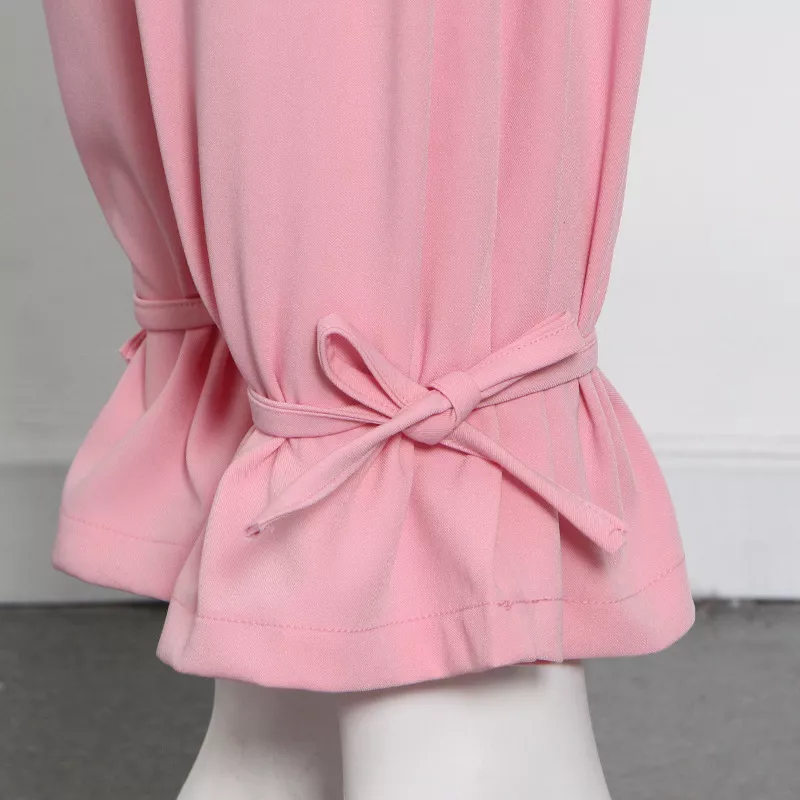 tailleur completo set giacca maglia pantaloni slim elegante rosa cipria 69856