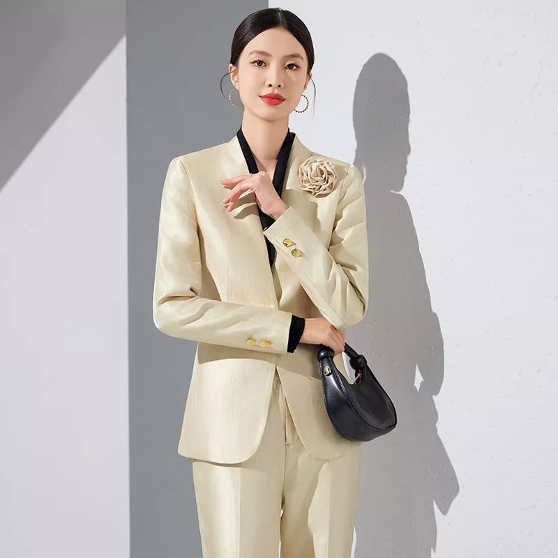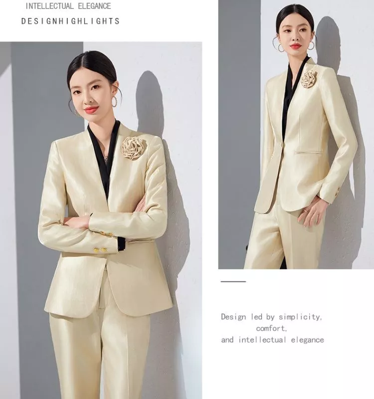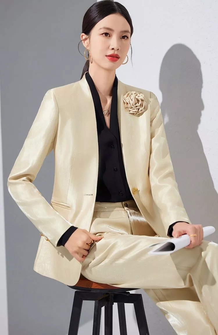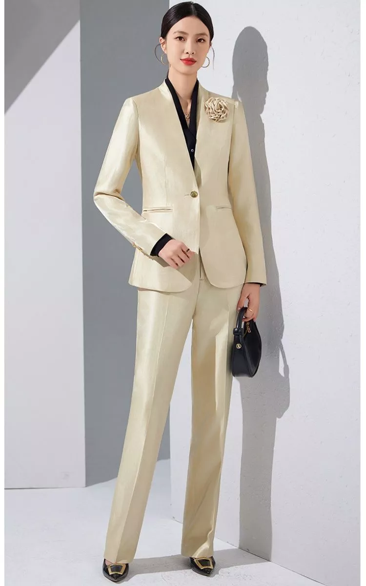 Tailleur Completo Ufficio Outfit Set Outfit Giacca Blazer Champagne Slim 21316
