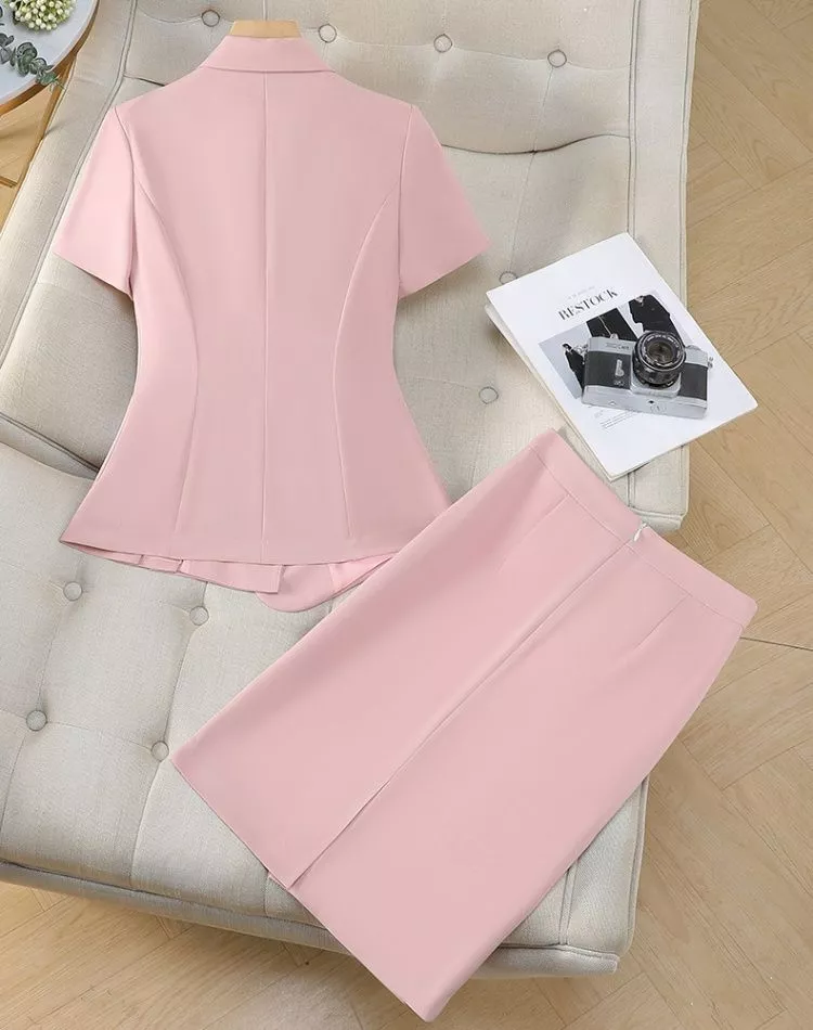 Tailleur Donna Elegante Giacca Manica Corta E Gonna Ufficio Rosa CF67522