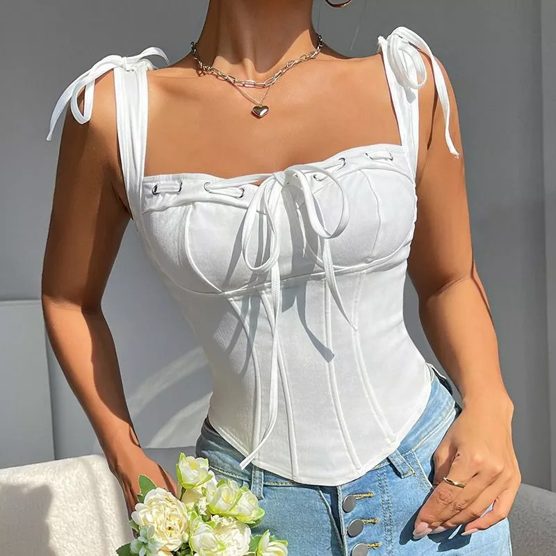 Top Donna Corsetto Bianco Modellante Stringhe Elegante Estate CF50321