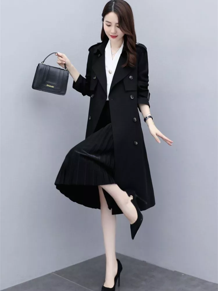 Trench Donna Nero Antivento Stile Britannico Con Cintura Elegante CF61750