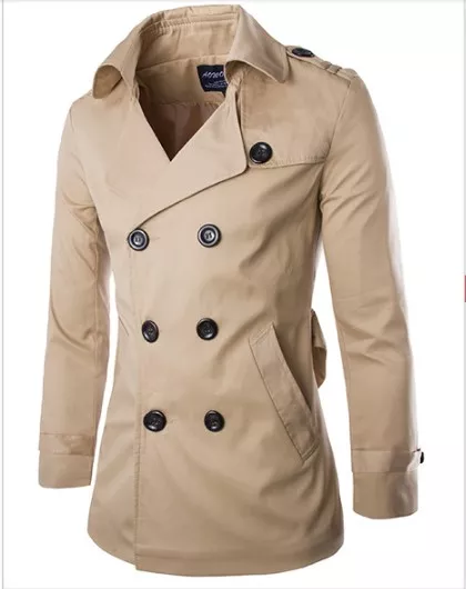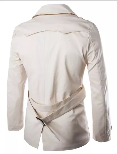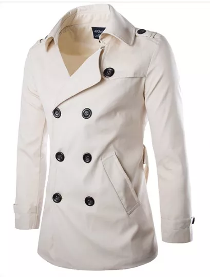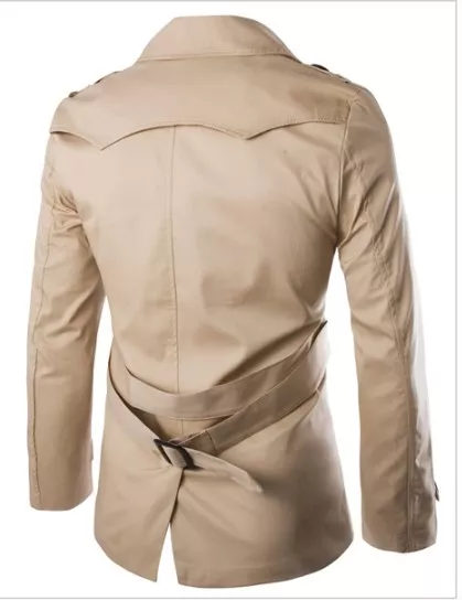 Trench Uomo Doppiopetto Impermeabile Con Cintura Antivento Beige Elegante 8531