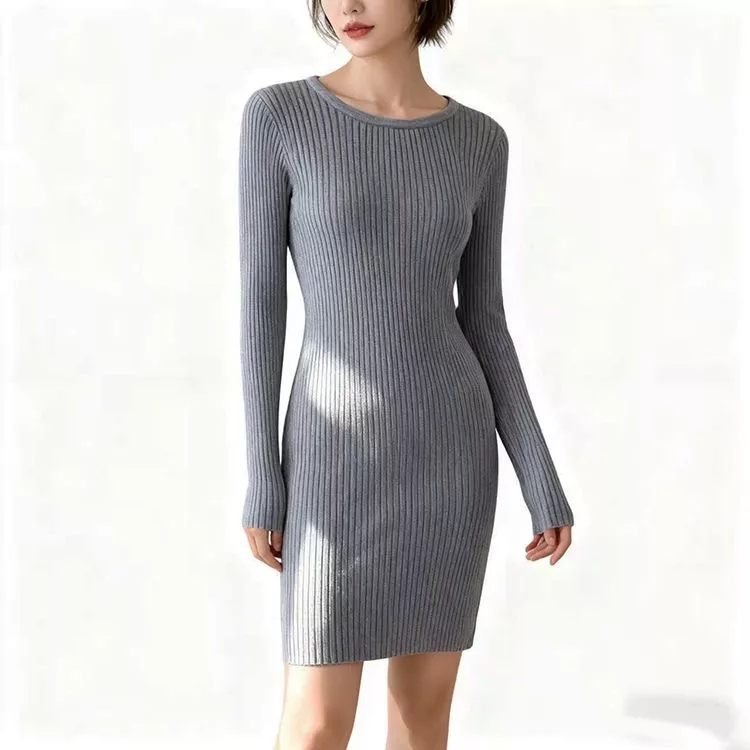 Tubino Maglia Aderente Grigio Maniche Lunghe Stile Minimal Chic CF59660