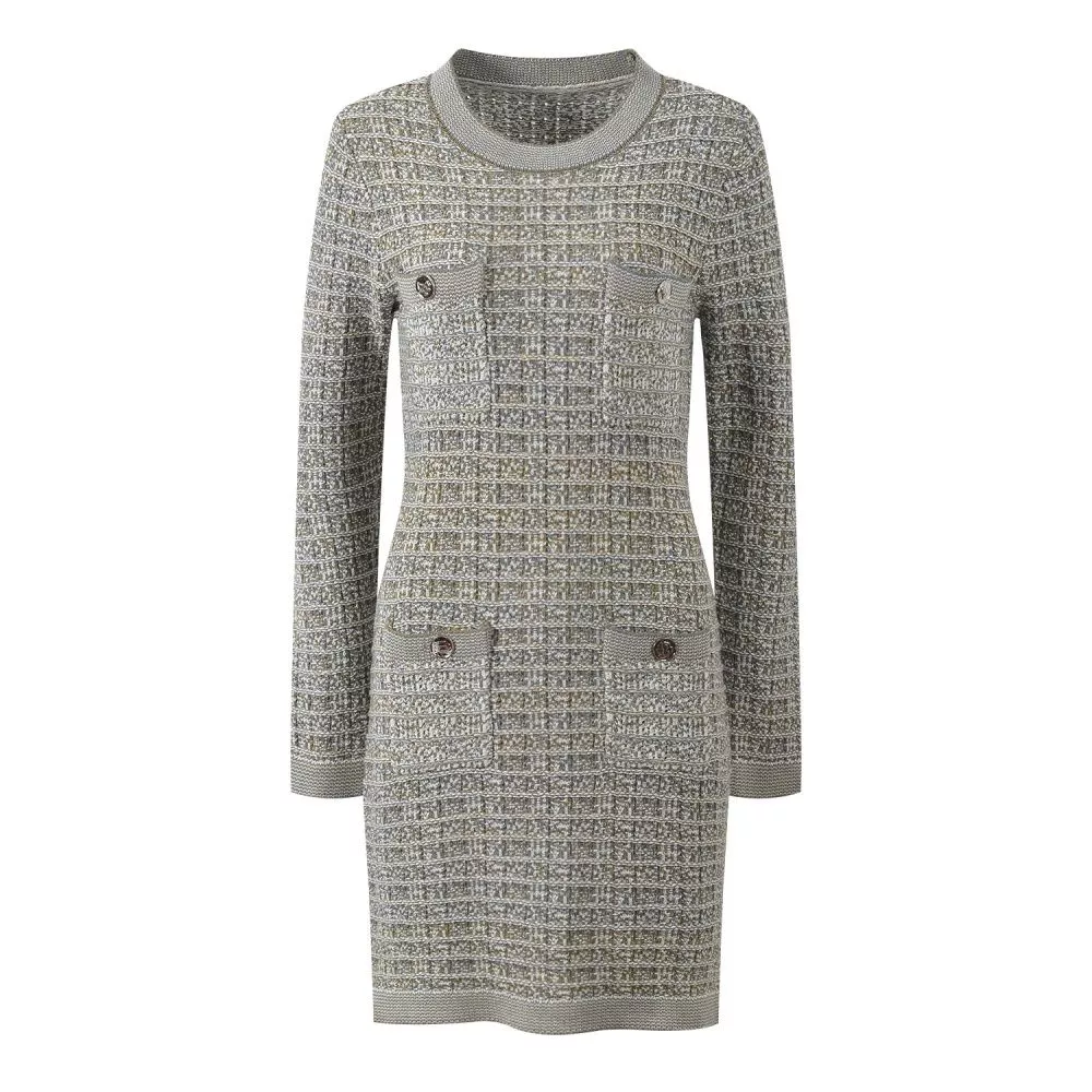 Vestito Donna Tweed Verde Chiaro Elegante Aderente Con Maniche Lunghe CF61325