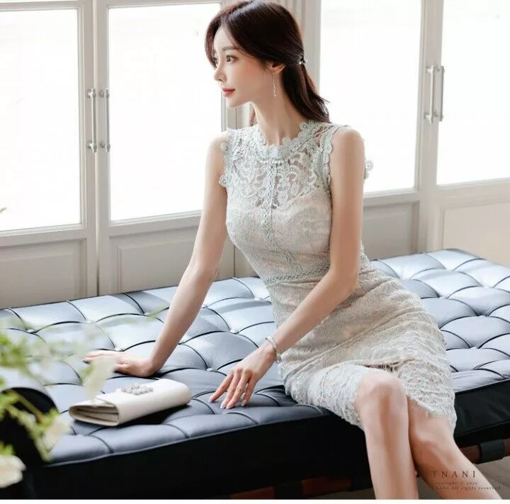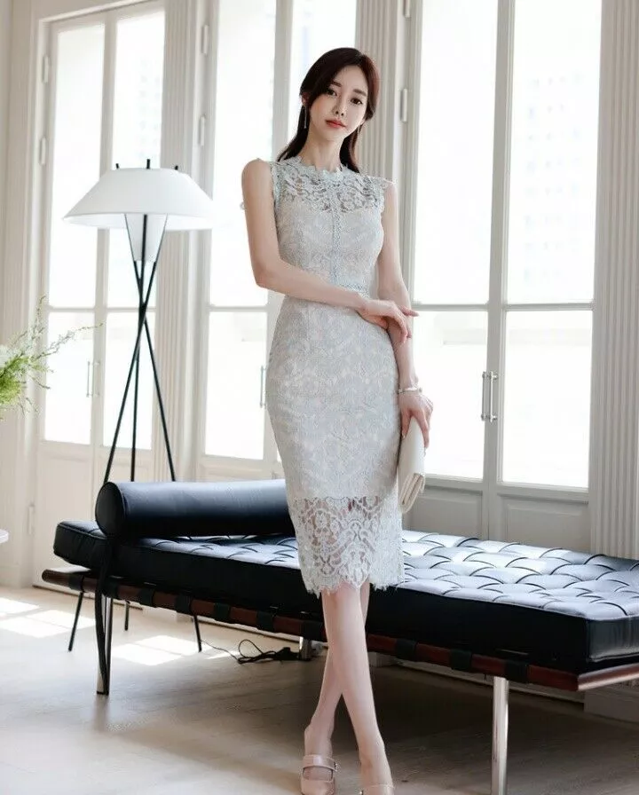 tubino vestito abito donna elegante ginocchio pizzo bianco quadri slim A145