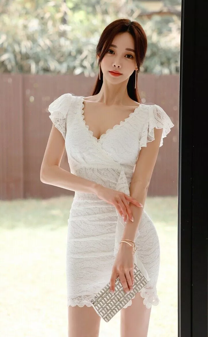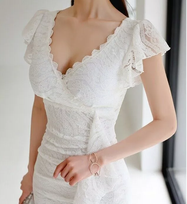 tubino vestito abito donna elegante mini bianco pizzo elegante slim A136