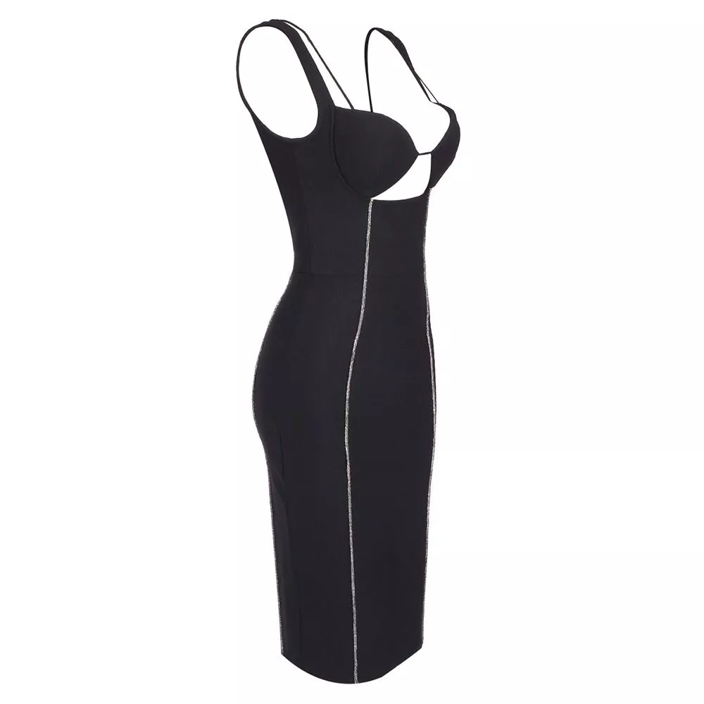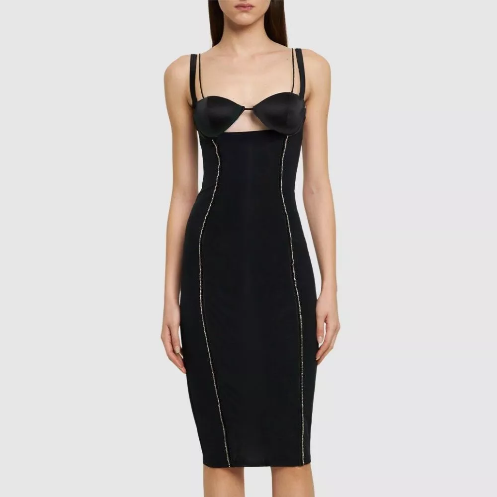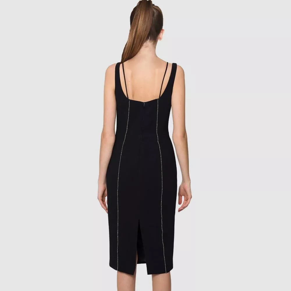 Tubino Vestito Abito Donna Elegante Nero Slim Dress Aderente Raso 31788