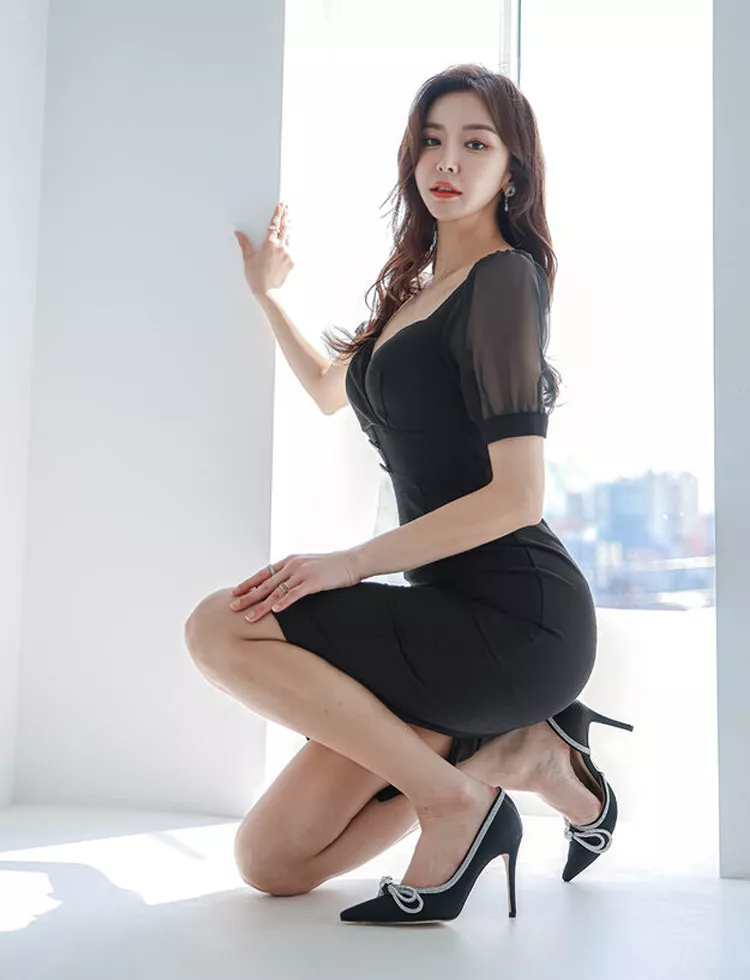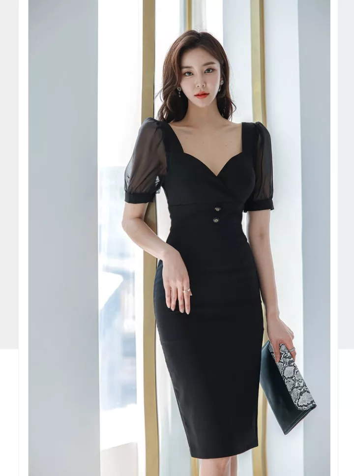 Tubino Vestito Abito Donna Elegante Scollato Slim Nero Aderente 68822
