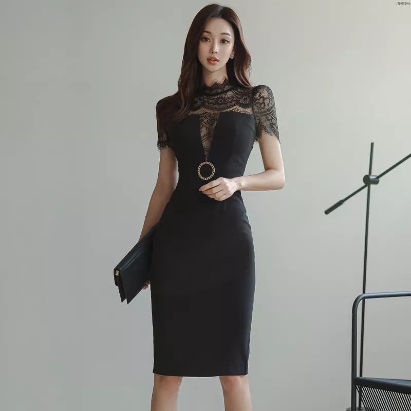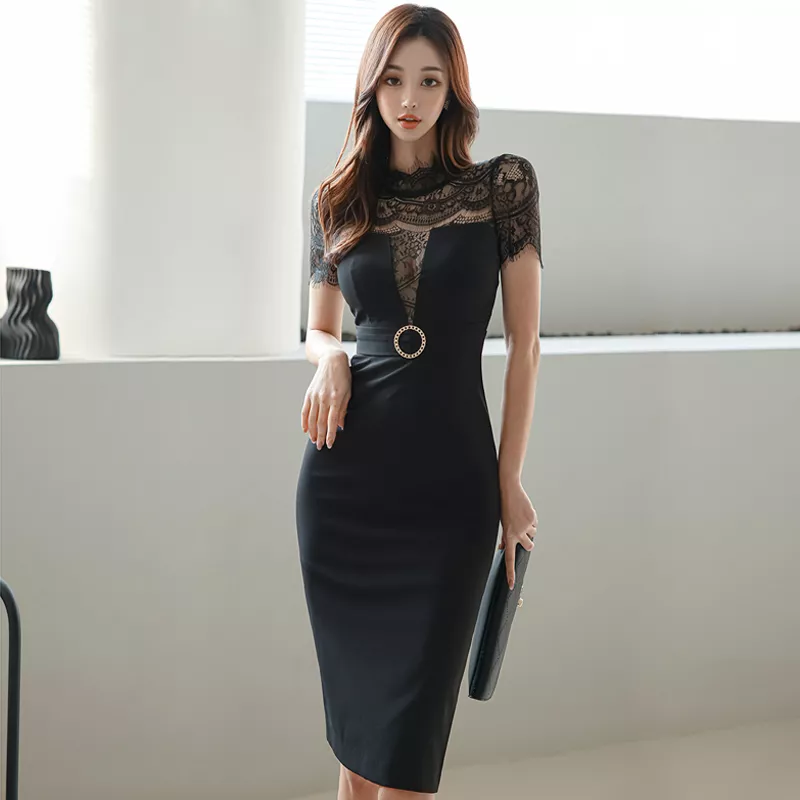 Tubino Vestito Abito Donna Elegante Scollato Slim Nero Ginocchio 53399