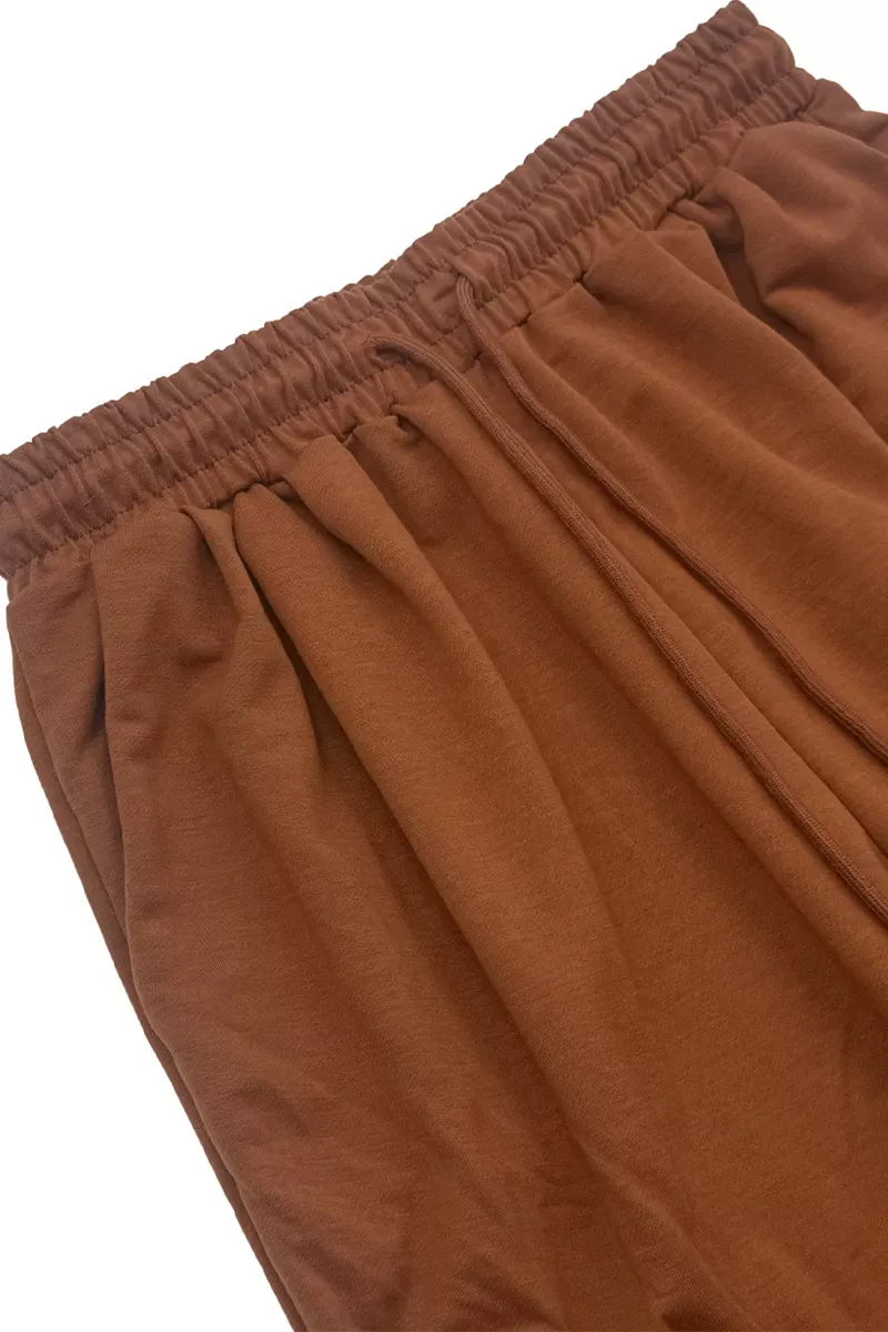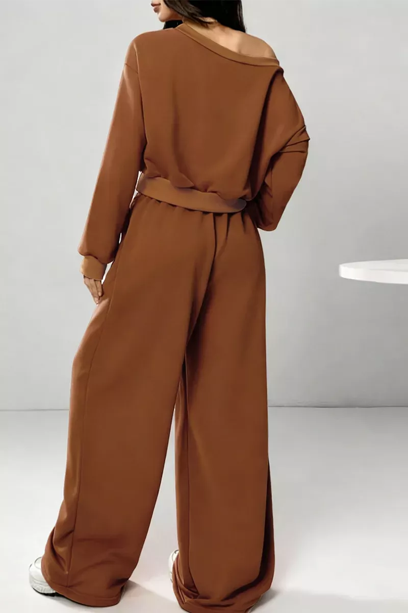 Tuta Donna Marrone Casual Pantaloni Larghi Vita Alta Top Morbido CF69234