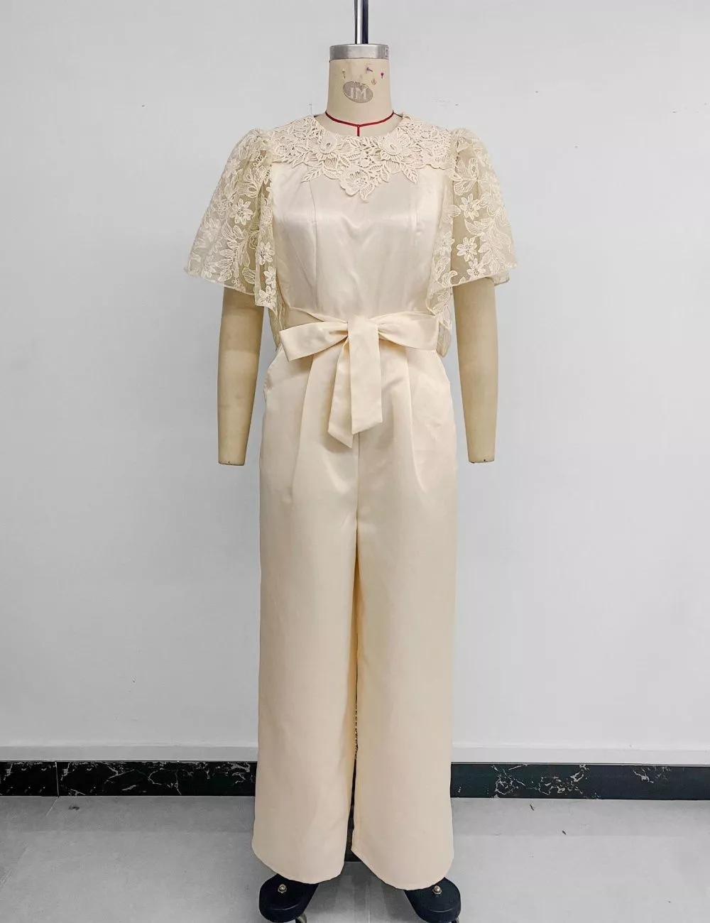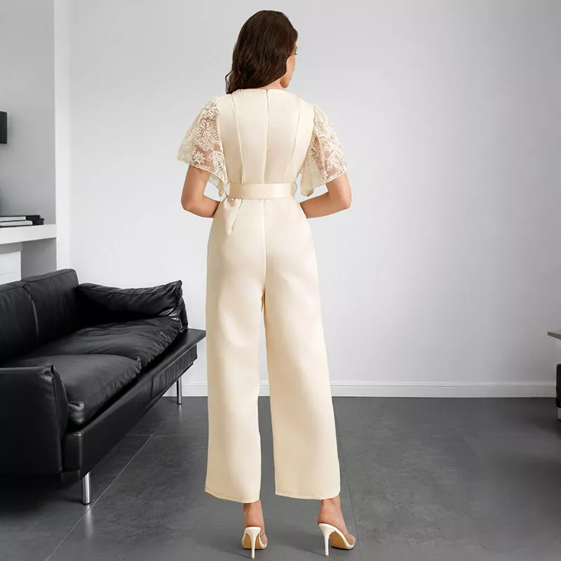 Tuta Elegante Donna Albicocca In Raso Con Pizzo E Vita Con Cintura CF63483
