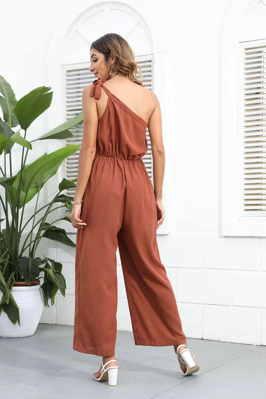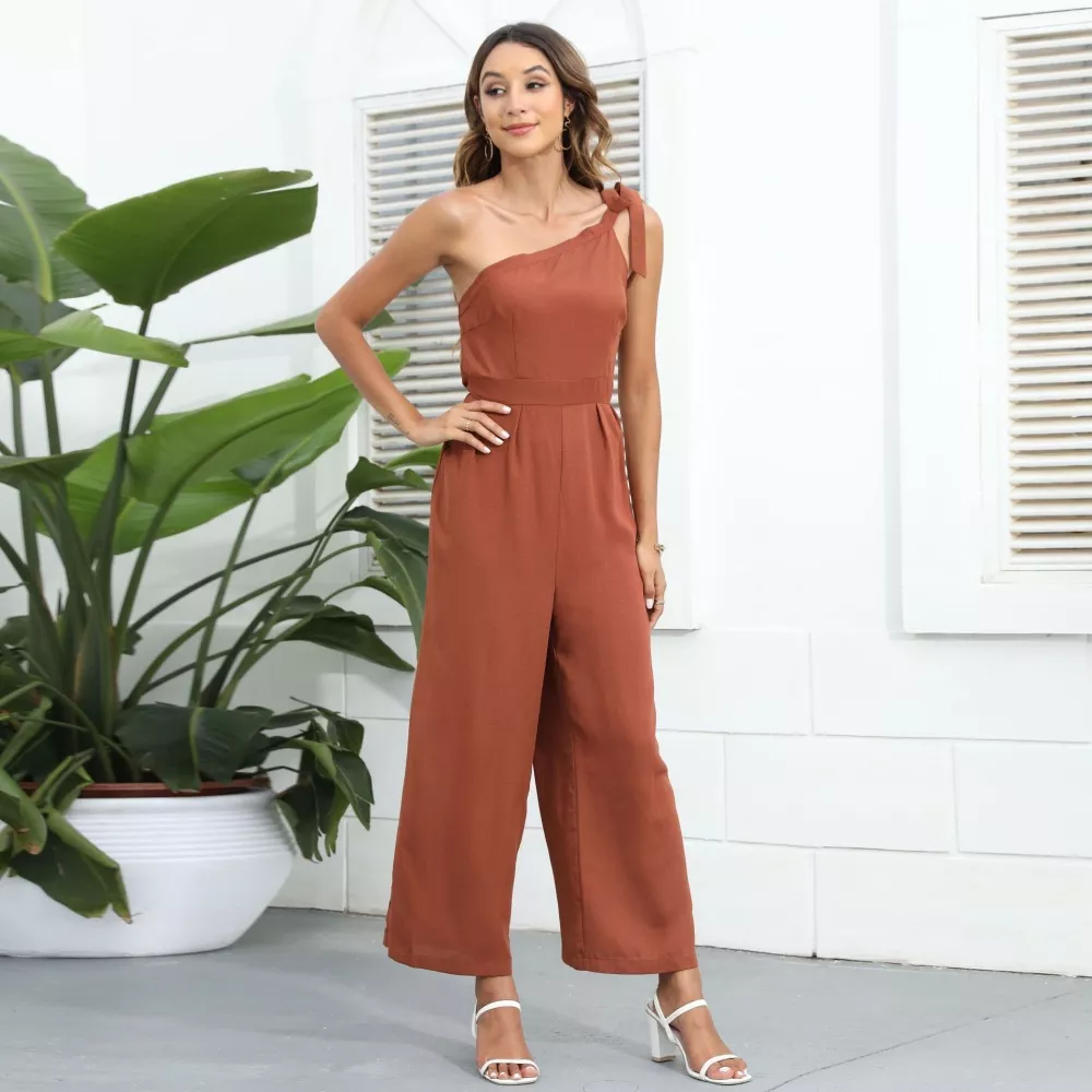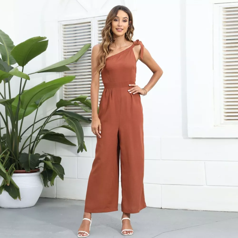 Tuta Intera Donna Jumpsuit Morbida Elegante Pantaloni Marrone Beige Over 55629