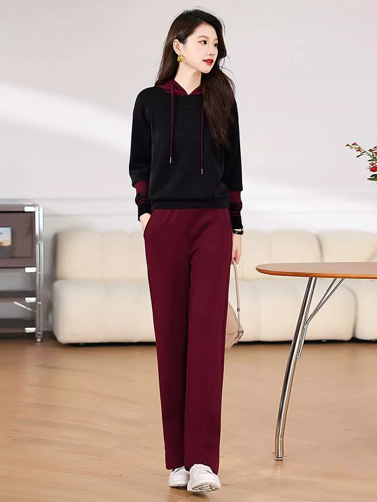 Completo Rosa Donna In Maglia 2 Pezzi Con Maglione A Contrasto Chic CF57717