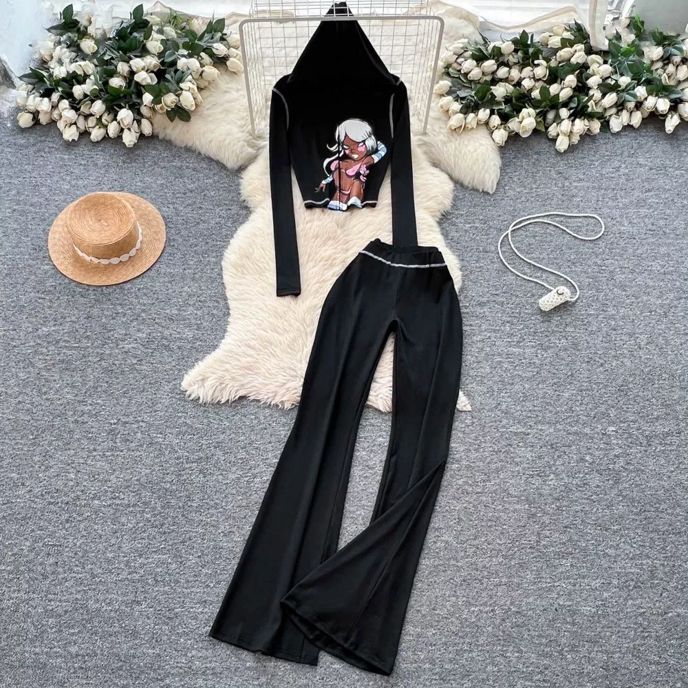 Set Donna Due Pezzi Con Top Corto A Cappuccio E Pantaloni A Vita Alta CF64968