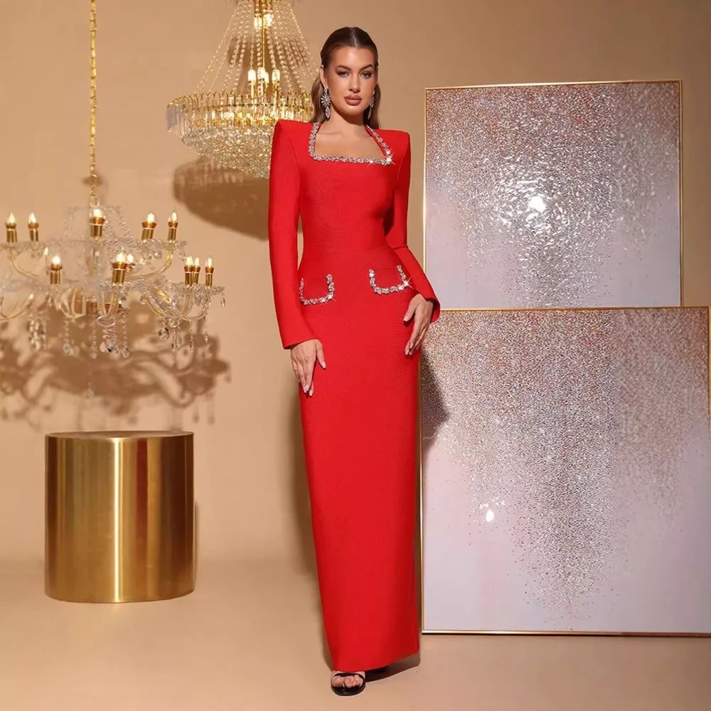 Vestito Rosso Intenso Elegante Con Strass Cerimonia Donna Evento CF68151