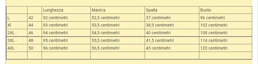 | 3XL · | 48· | 95 centimetri | 55,5 centimetri | 41,5 centimetri | 114 centimetri |