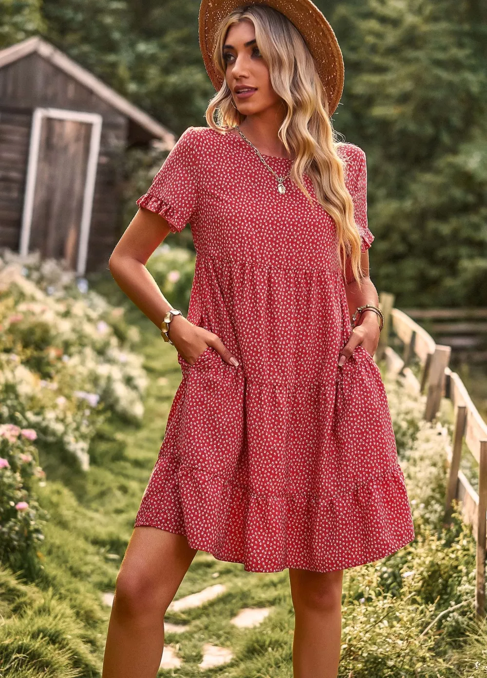 Vestito Abito Donna Corto Bohemian Rosso Pois Morbido Leggero Boho 51967