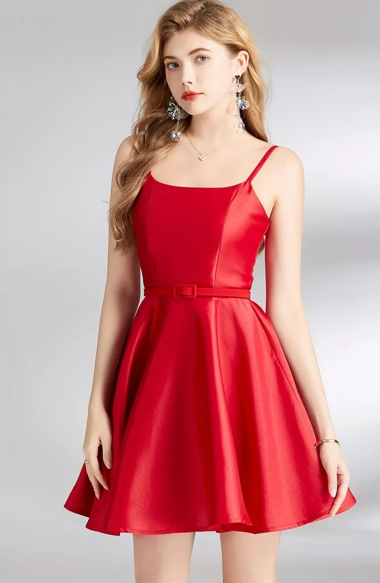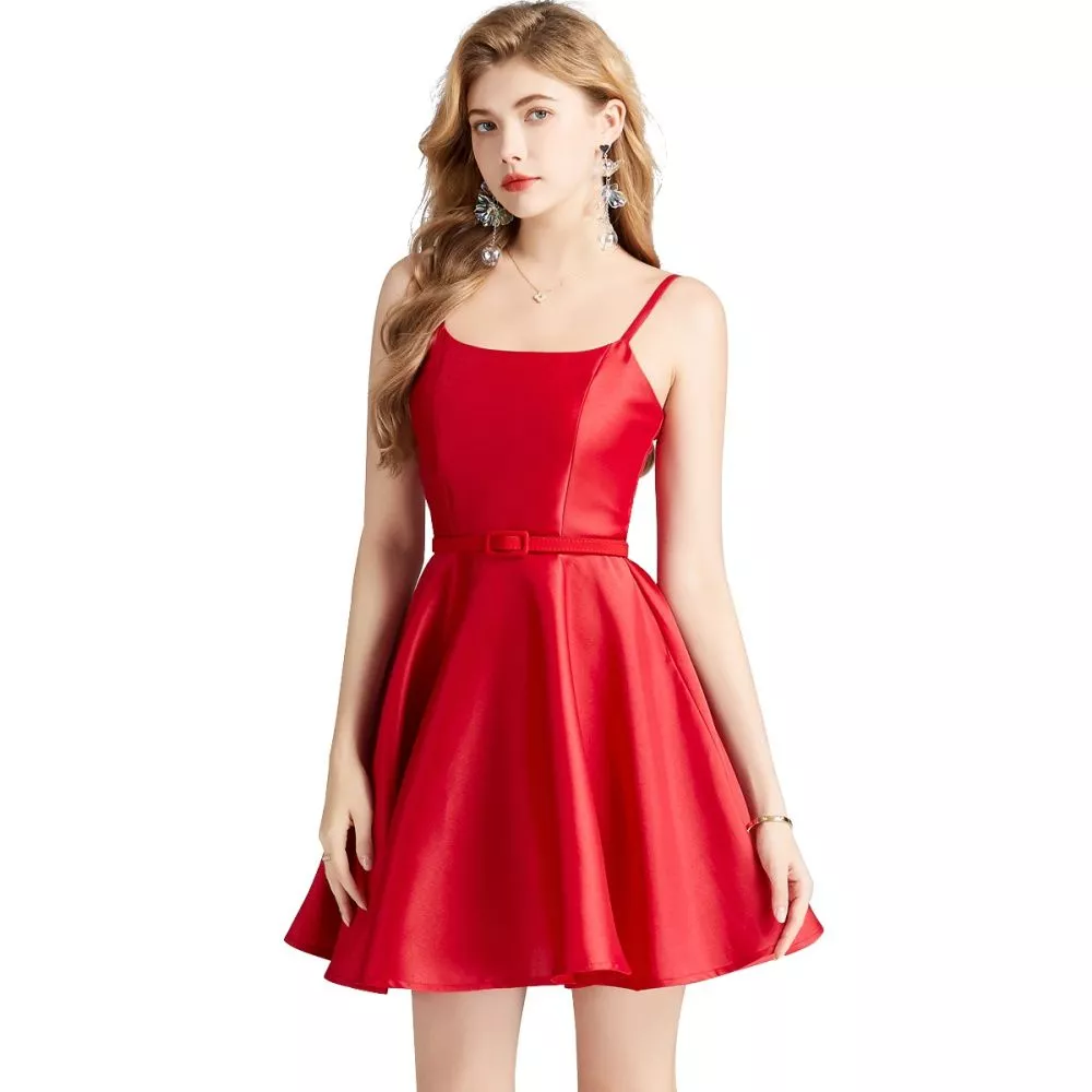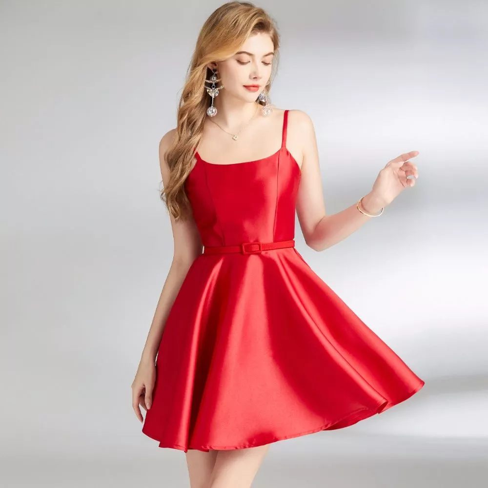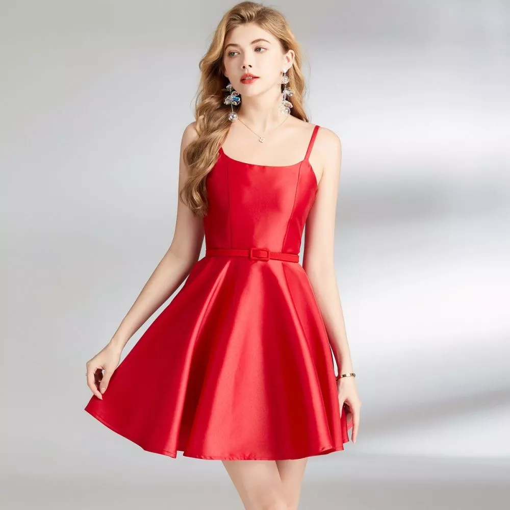 Vestito Abito Donna Corto Elegante Rosso Raso Morbido Raso GIPSY 09888