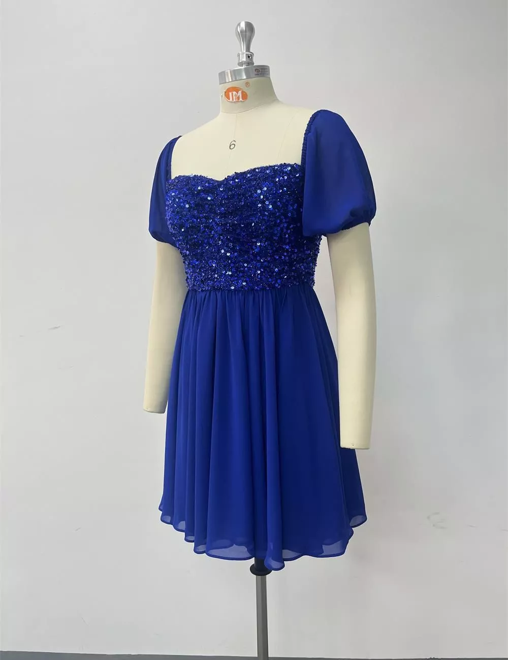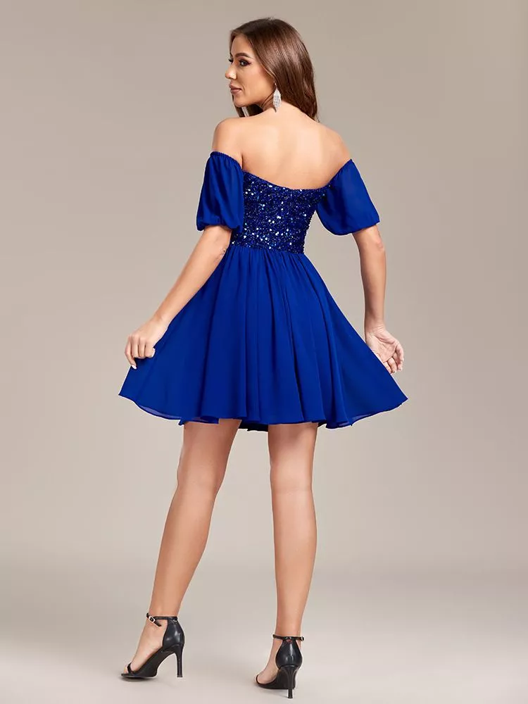 Vestito Abito Donna Corto Elegante Scollato Blu Sera Evento Cerimonia Raso 11221