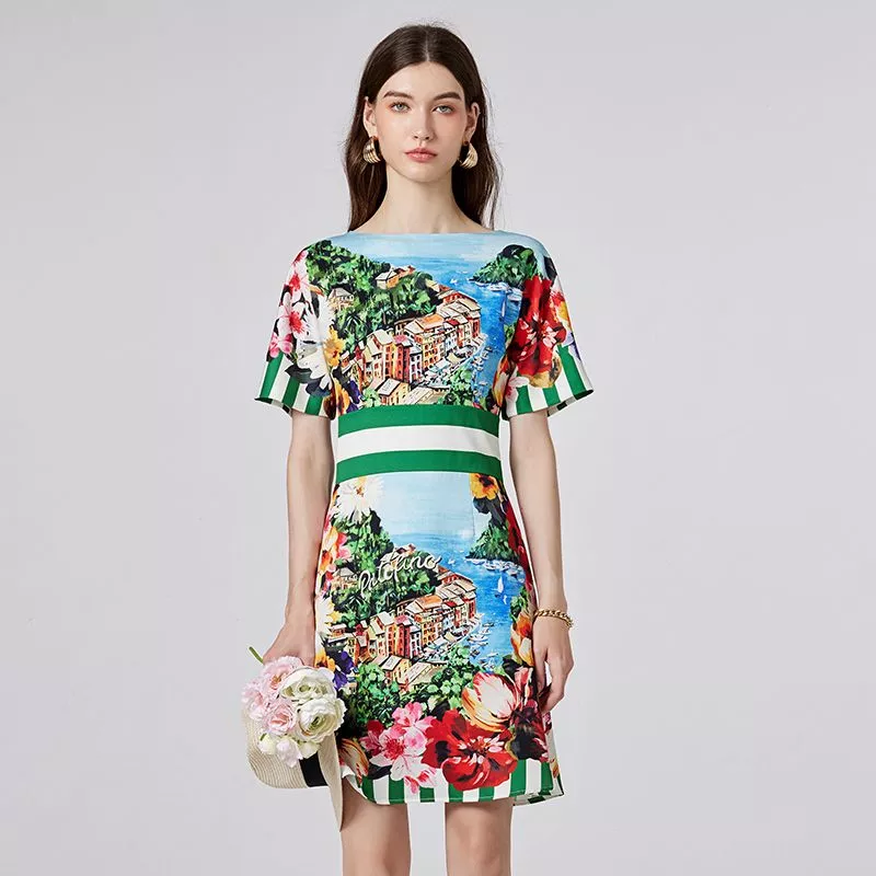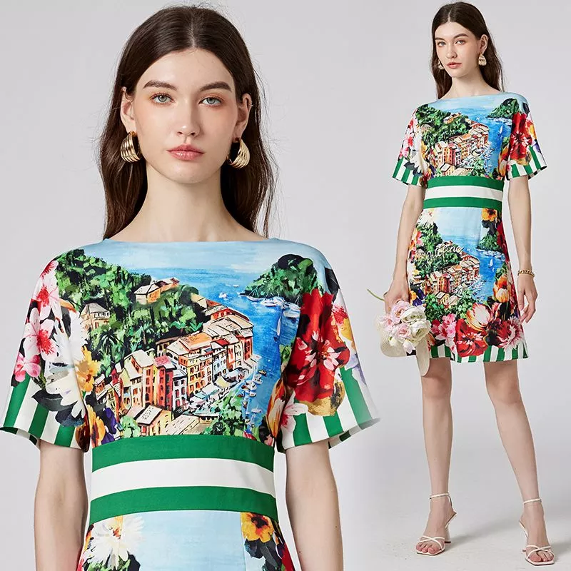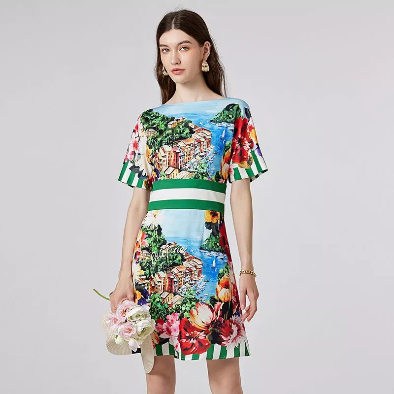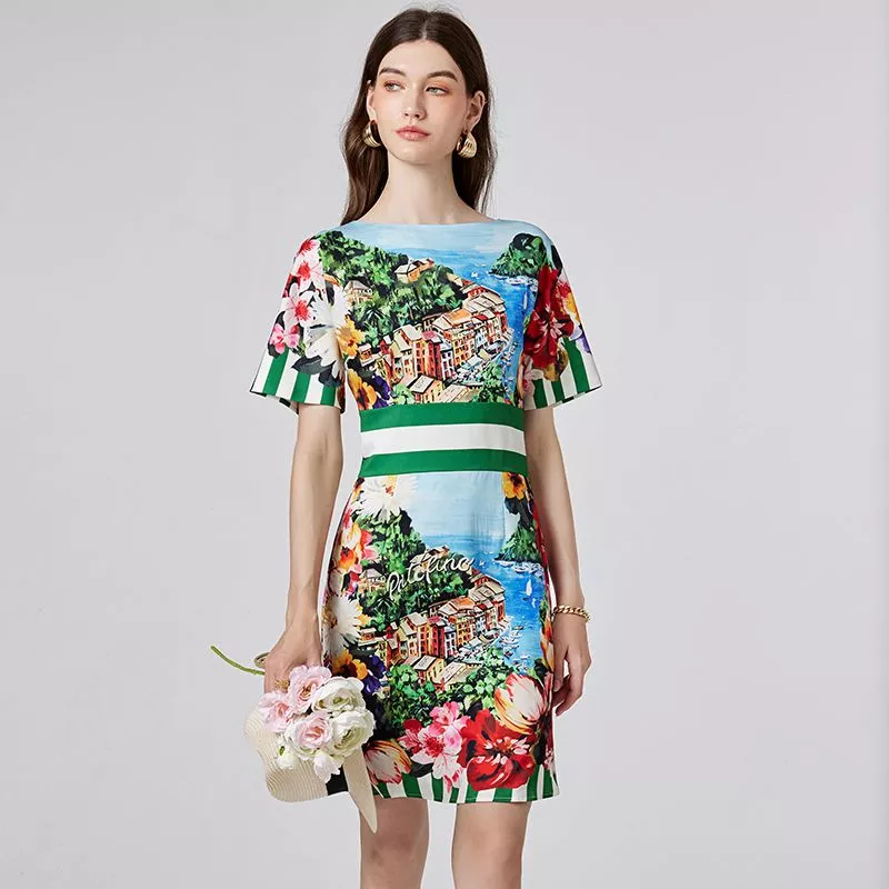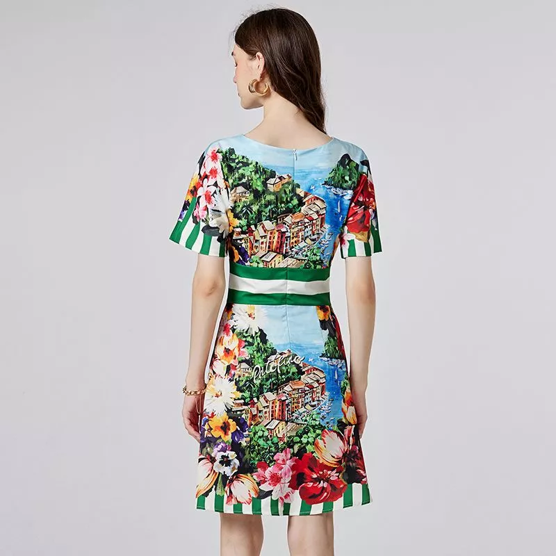 Vestito Abito Donna Corto Elegante Verde Colorato Morbido Raso GIPSY 00342