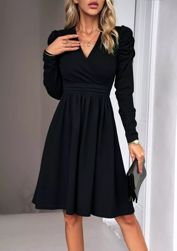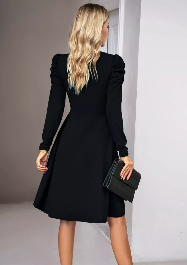 Vestito Abito Donna Corto Morbido Nero Raso Svasato Elegante 80036