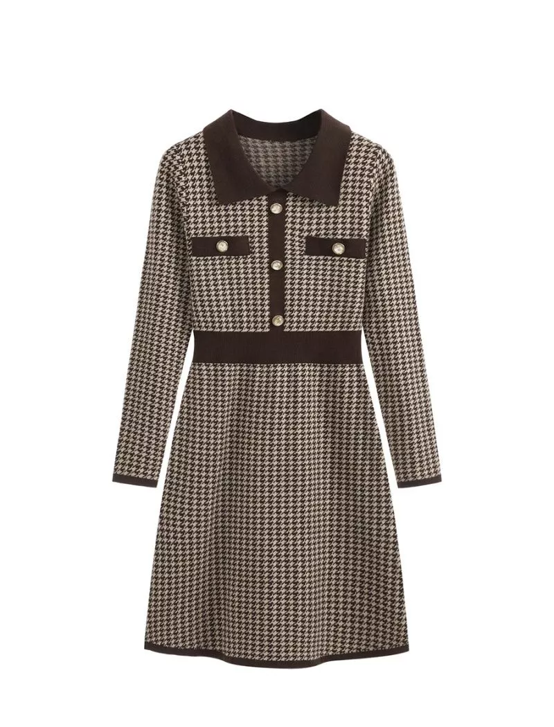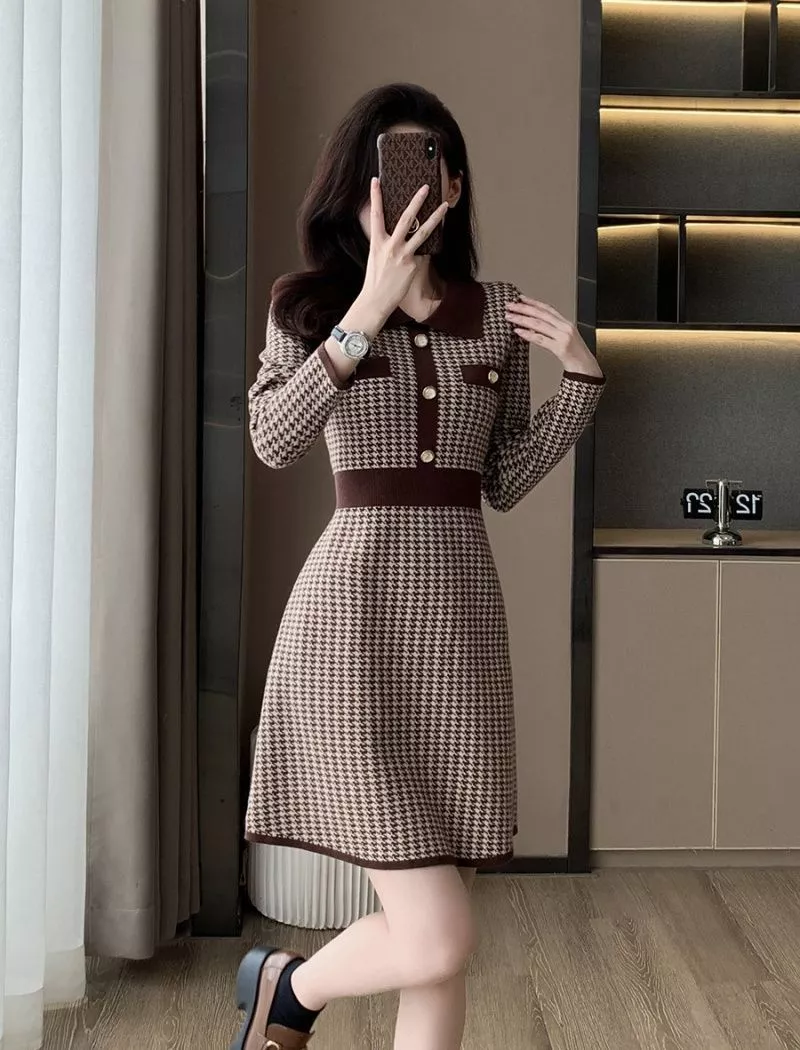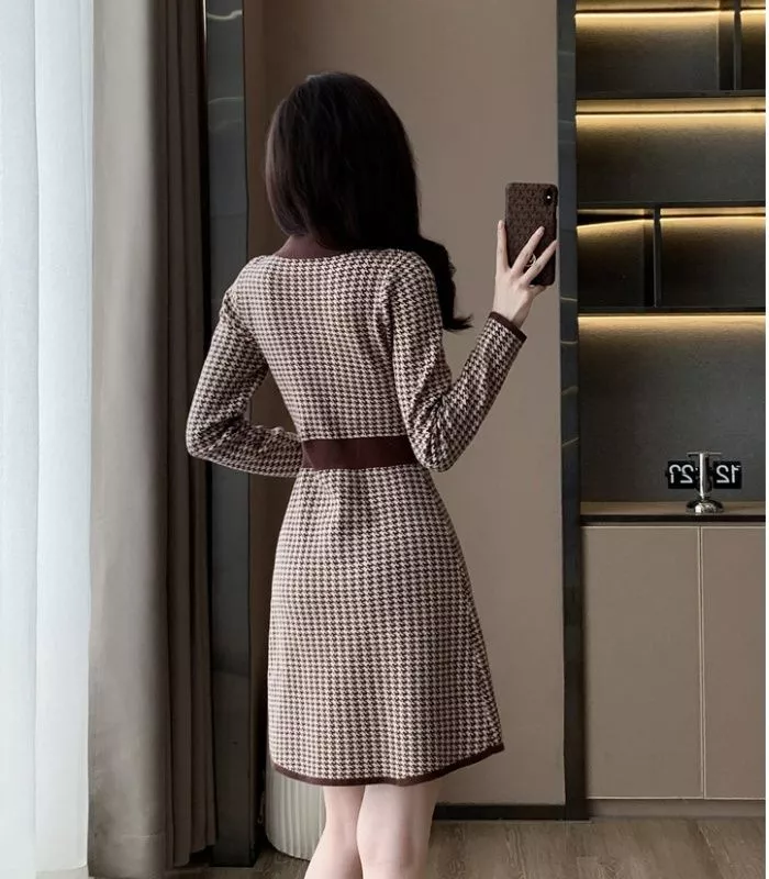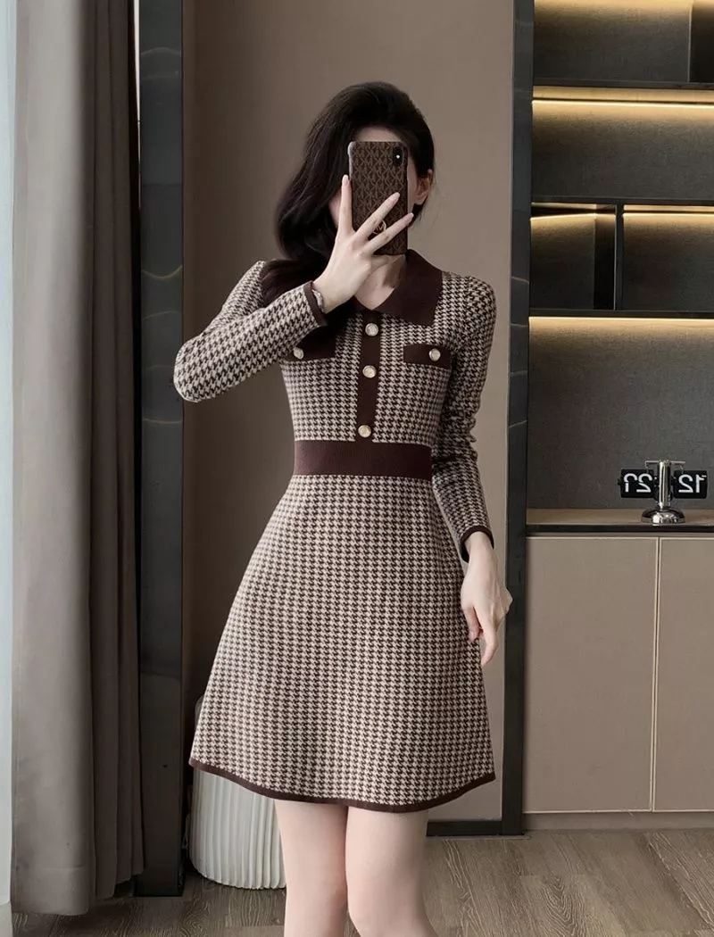 Vestito Abito Donna Corto Raso Morbido Marrone Righe Ginocchio Elegante 87524